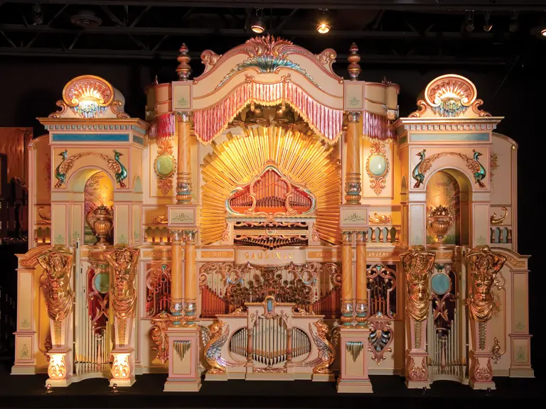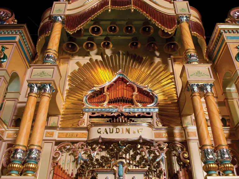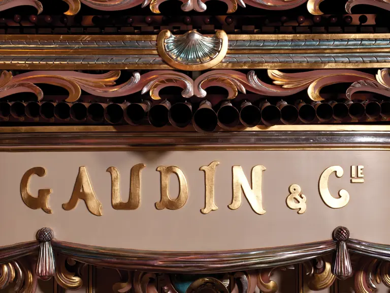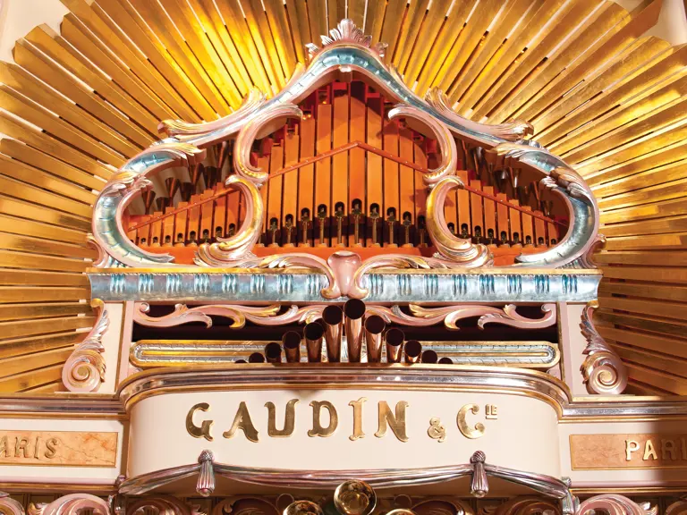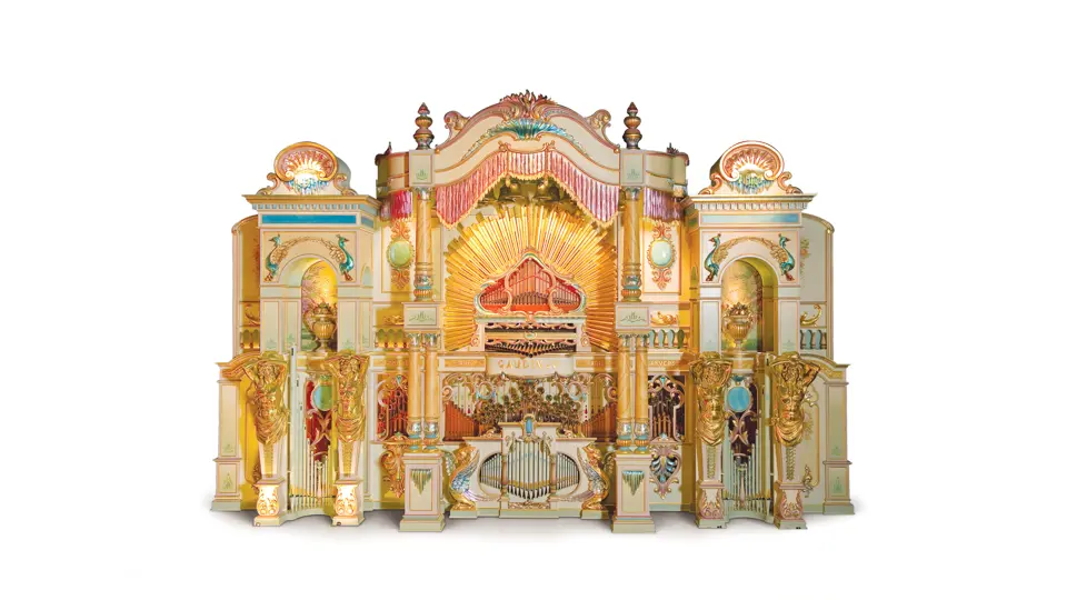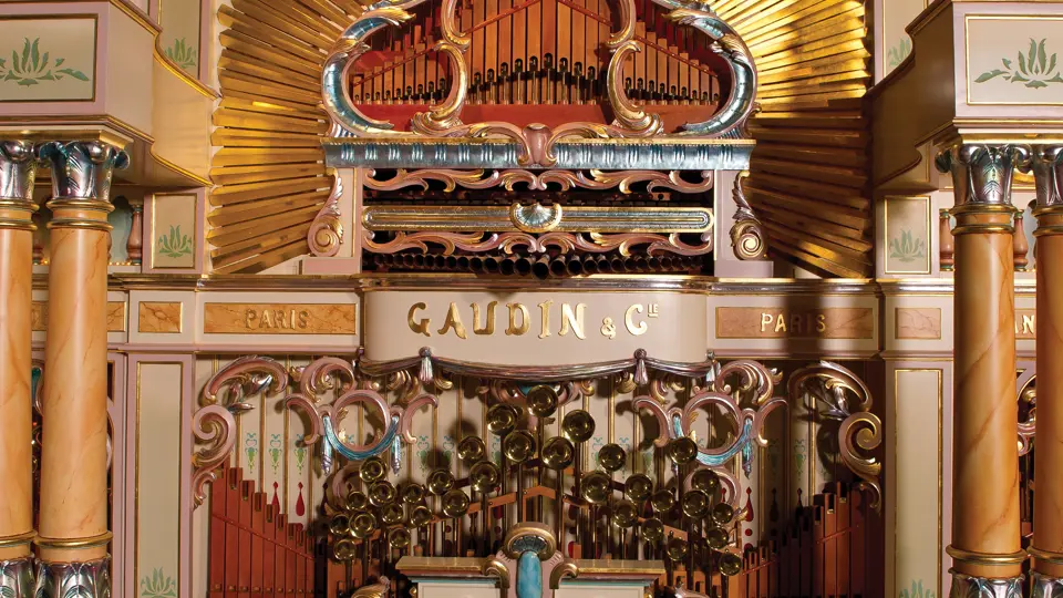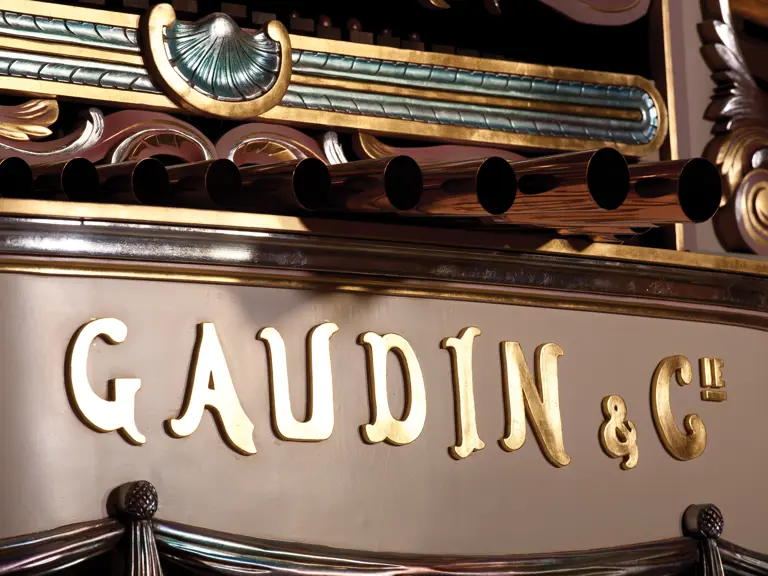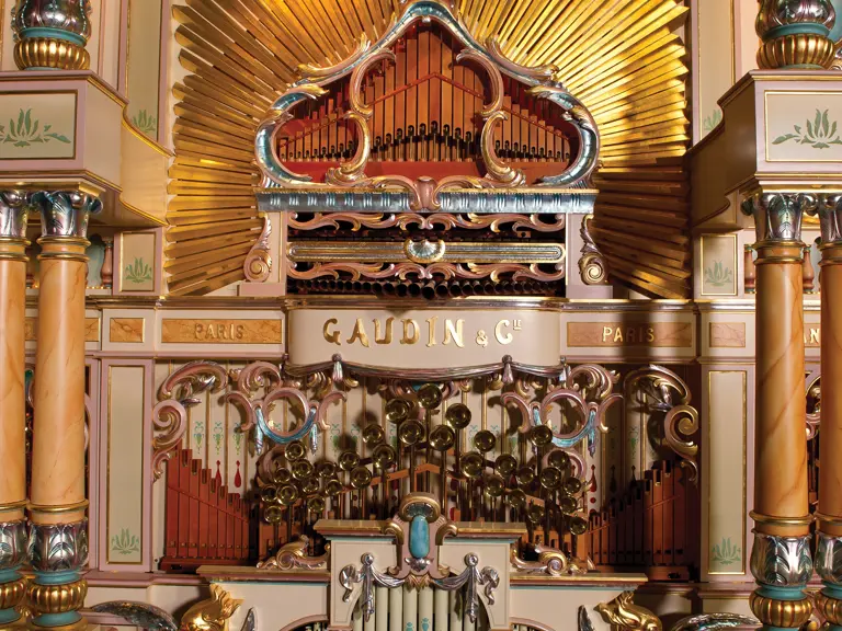 One of the absolute highlights of the Milhous Collection, this is the largest scale Gaudin organ known. During the 'teens, Gaudin focused on building fairground organs with elaborate carvings and exposed brass trumpet pipes. In the 1920s, they shifted their emphasis to elaborate dance organs.