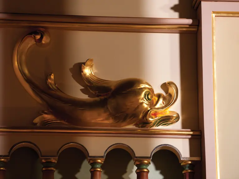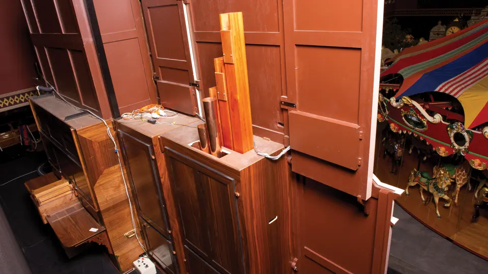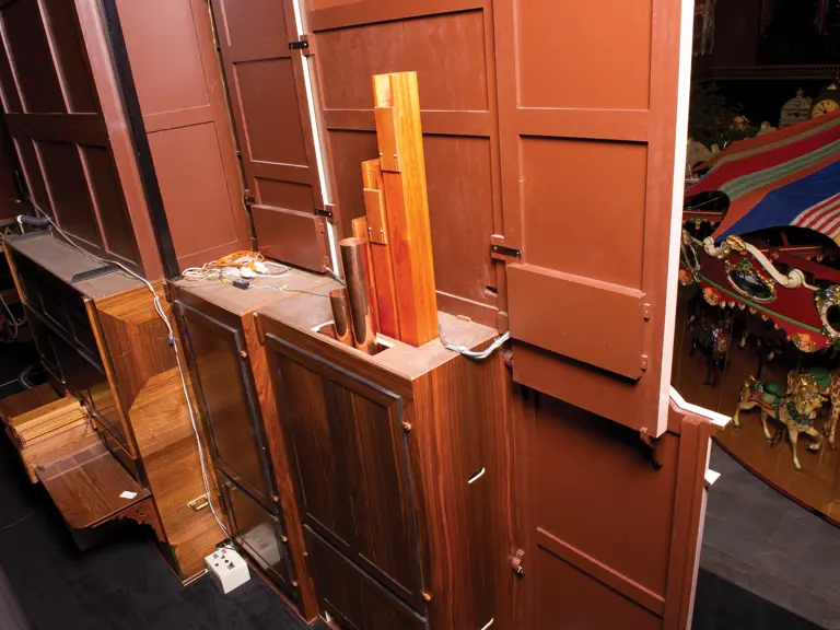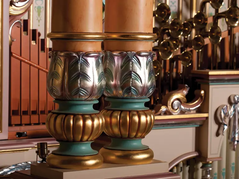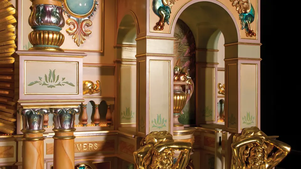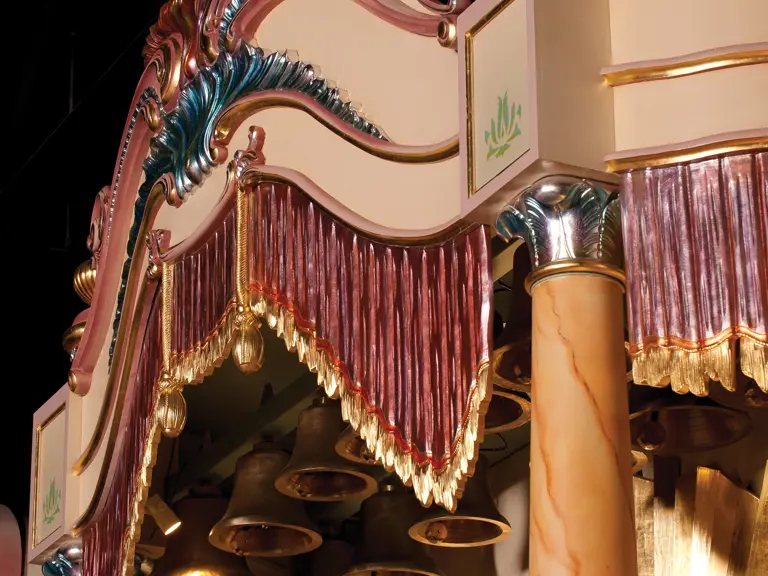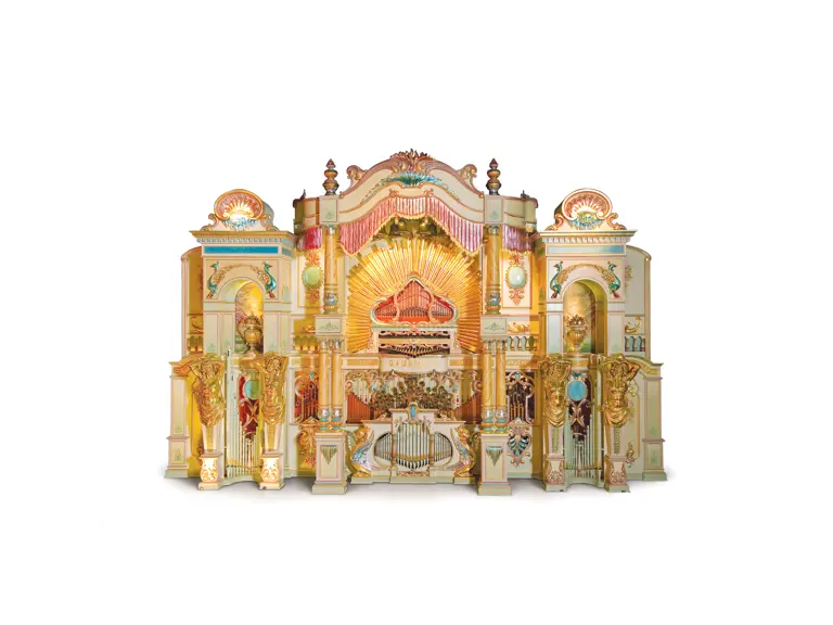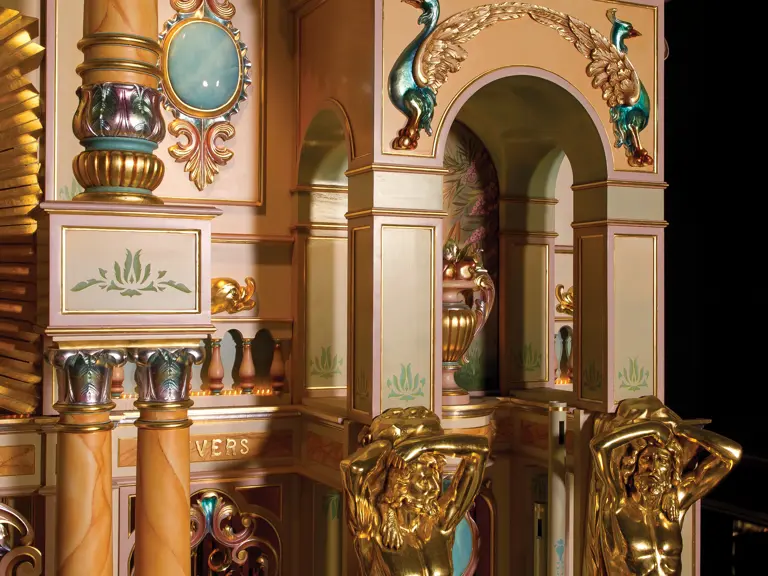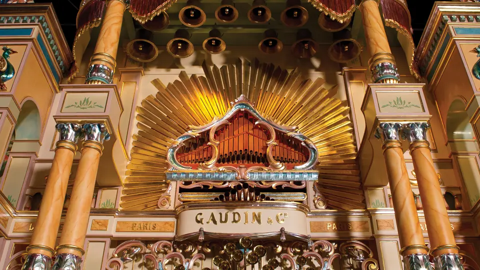 One of the absolute highlights of the Milhous Collection, this is the largest scale Gaudin organ known. During the 'teens, Gaudin focused on building fairground organs with elaborate carvings and exposed brass trumpet pipes. In the 1920s, they shifted their emphasis to elaborate dance organs.