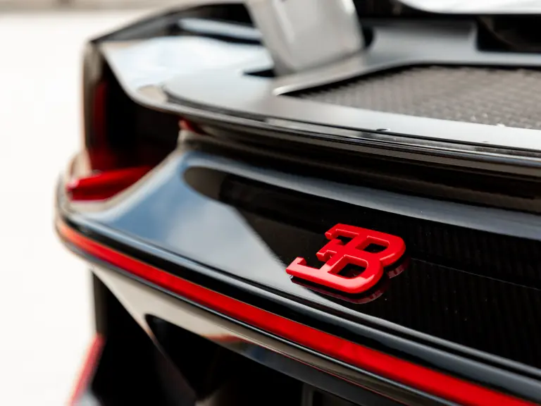 Claiming limited mileage and fastidious care by two discerning collectors, this Chiron Sport is an ideally well-preserved example of Bugatti’s top-shelf product. Completed in November 2018 to US specifications, chassis number 795174 is distinguished by numerous bespoke elements of its cosmetic livery, starting with the external finish of exposed black carbon fiber accented with Italian Red body elements such as the side sills, chin spoiler, rear taillamp accent, and rear exhaust surround. The red paint was also applied to the signature line, the lower halves of the sideview mirrors, the rear EB logo, the wheel cap logos, brake calipers, and engine covers.