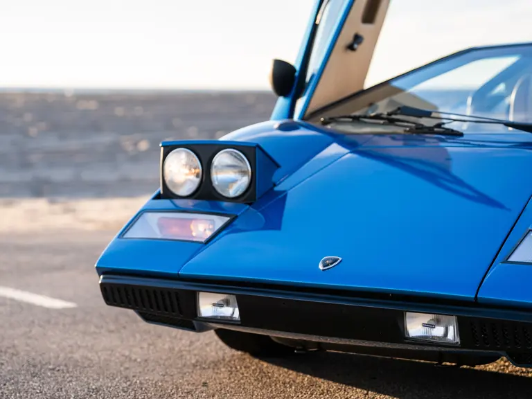 The Countach presented here, chassis number 1120172, is the 86th first-generation LP 400 Periscopio produced. Finished in the striking shade of Blu Tahiti over a Tobacco leather interior, with air conditioning and two external rearview mirrors, it was completed on 22 December 1975. The car was then delivered to Carrie Eugene, the official Lamborghini dealer and importer in Canada, on 29 January 1976.