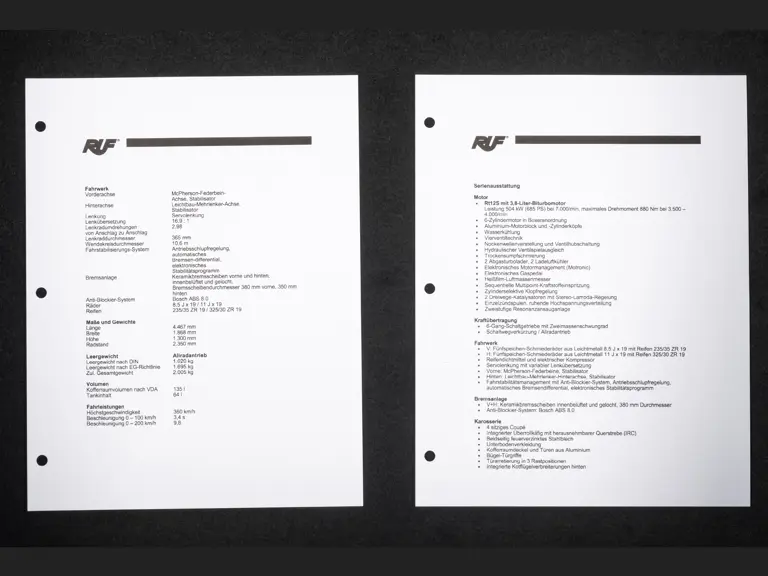 - Accompanied by a road safety kit, owner’s books, RUF Zertifikat, and vehicle information sheet