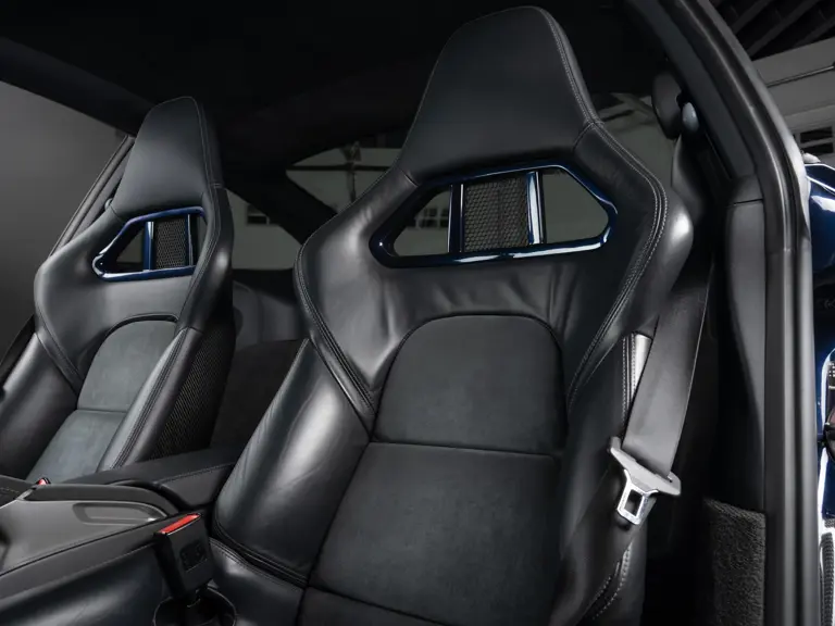 The example on offer is finished in a rare shade of Midnight Blue Metallic over a Dark Grey natural leather interior. As ordered from the factory, the car additional features a Bose surround sound system, Navigation for PCM, and illuminated carbon fiber door sills. The Carfax additionally confirms this Porsche was delivered new to South Carolina, and now shows 19,250 miles on the odometer at the time of cataloguing. As an additional personal touch, the plastic inserts in the bucket seats have been painted to match the exterior. Lastly, the car will be accompanied by a set of owner’s manuals with a leather storage pouch.