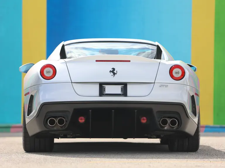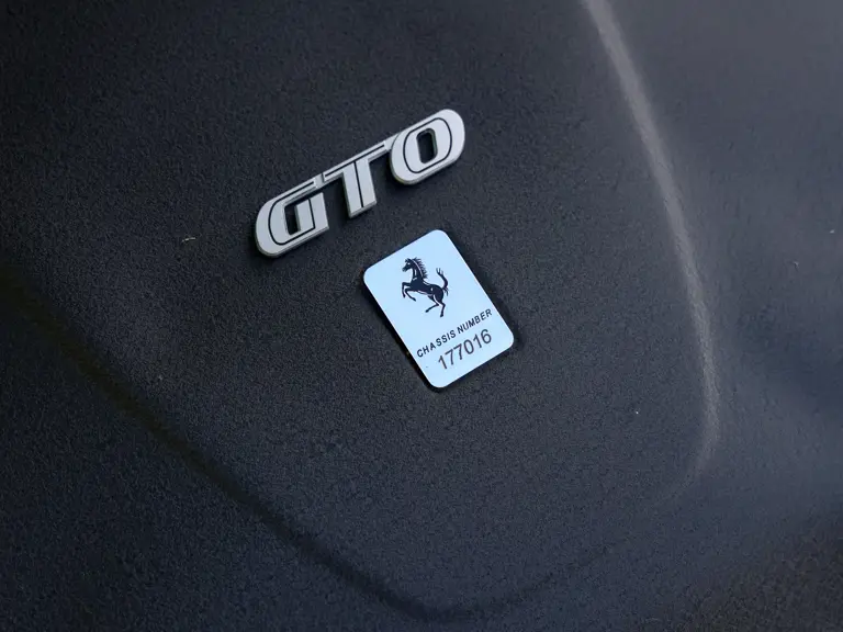 The closely guarded nameplate was resurrected in April of 2010 on the 599 GTO, which was developed as a roadgoing car directly from the 599XX competition prototype. It benefitted from the latest, cutting-edge F1 engineering and technology, with numerous aerodynamic and cooling enhancements, including revised front and rear diffusers and a redesigned rear spoiler to increase downforce. Advanced chassis characteristics such as the F1-Trac traction control were used to reduce understeer and maximize responsiveness. At the heart of the car was a raw, naturally aspirated 6.0-liter V-12 engine, producing an astonishing 670 horsepower at 8,250 rpm. This was coupled with a significantly updated six-speed automated manual transaxle that would execute shifts in just 60 milliseconds, 40 milliseconds less than the 599 GTB—a pairing that launched the GTO from 0 to 60 mph in just 3.1 seconds. It was at the time Ferrari’s fastest road car, and remains one of the fastest that the company has ever built. Ferrari even admitted that it could lap the company’s Fiorano test track a full second faster than an Enzo!