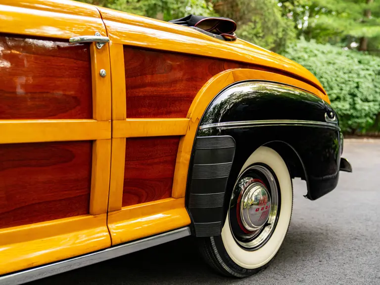Strikes and material shortages kept production of the Sportsman from fully ramping up until July of 1946. Cars were built alongside regular station wagons at the Iron Mountain facility in Michigan’s Upper Peninsula. Unlike its station wagon counterpart, the Sportsman did not use wood as a structural component, but rather purely as a cosmetic embellishment. To create Sportsman models, outer door skins, quarter panels, and trunk lids were removed from standard convertible bodies, which were then coated in primer before maple wood framing and mahogany panels were fitted and varnished. Completed bodies returned for the fitment of final trim before shipment to Ford’s assembly plants to be mated to their chassis. The complicated process resulted in low production numbers of just 723 units in 1946, 2,774 in 1947, and 28 in 1948.