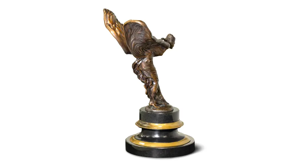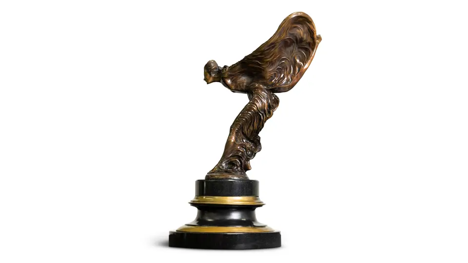 - Bronze sculpture of the “Spirit of Ecstasy” by artist Charles Sykes