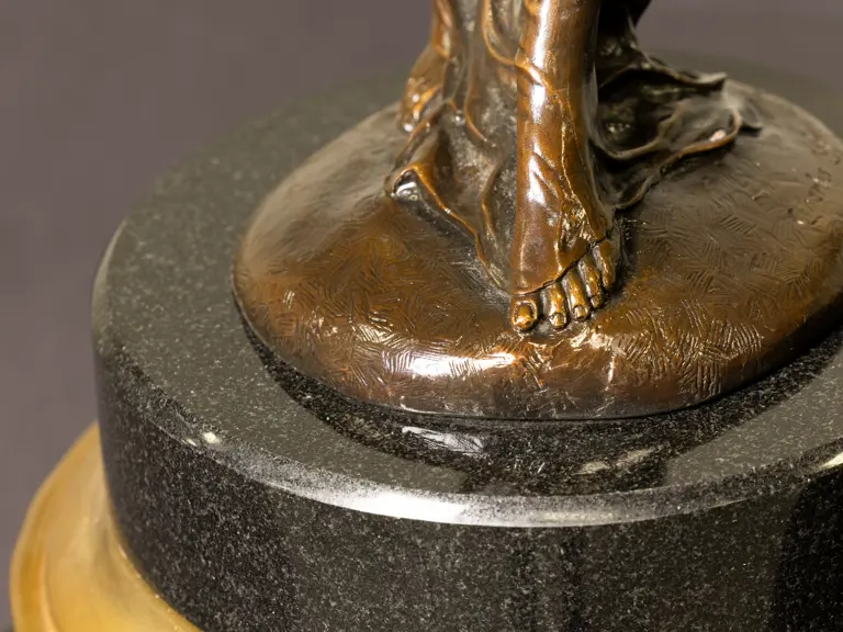 - Overall dimensions: 28.5 in. tall × 19 in. long × 15 in. wide including marble plinth; weighs approximately 80 lbs.