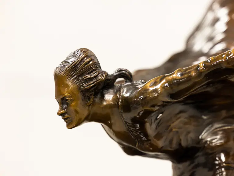 For further inspiration, Johnson pointed Sykes to the second-century BCE Grecian marble statue “Nike of Samothrace” on display at the Palais du Louvre in Paris, depicting the winged Goddess of Victory draped in a flowing tunic and mantle. Ultimately, Sykes instead drew on his earlier work, “The Whisper,” to create something far more delicate and ethereal, expressing what was described in a letter from the company as “the spirit of the Rolls-Royce—namely, speed with silence, absence of vibration, the mysterious harnessing of great energy, a beautiful living organism of superb grace like a sailing yacht.”