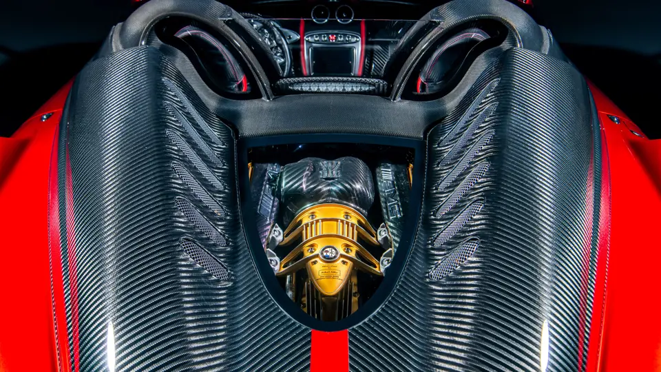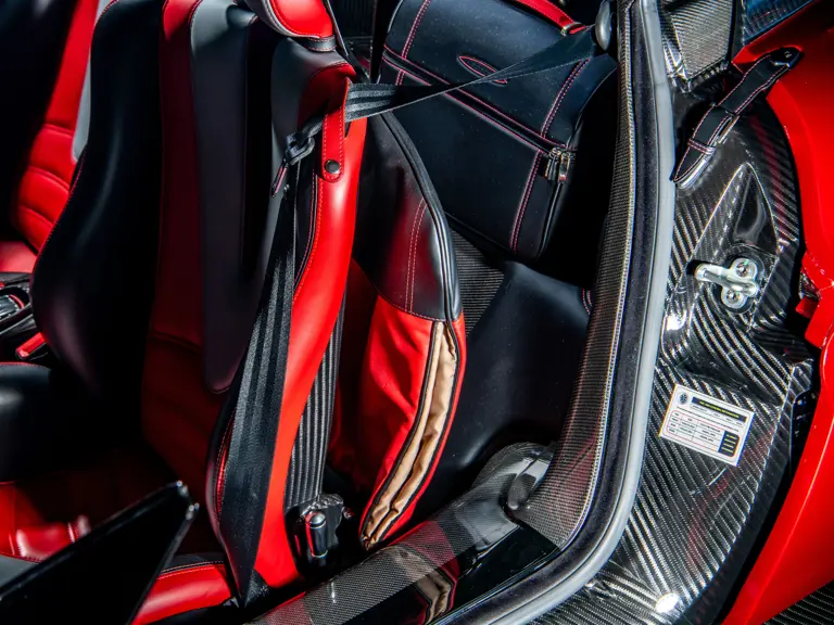 - Stunning Rosso Dubai exterior with exposed carbon fiber details