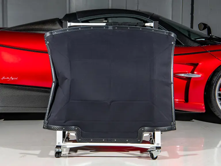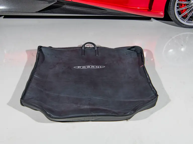 Under its present, and sole, ownership, this Huayra Roadster has been carefully maintained yet scarcely driven; as a result, it presents in essentially as-delivered condition, with the odometer displaying just 312 miles at the time of cataloguing. In addition to the removable carbon fiber hardtop, the car is now accompanied by a lightweight foldable, stowable fabric top for expedient protection while on the road, its manuals and warranty book in pouch, a battery charger, and luggage.