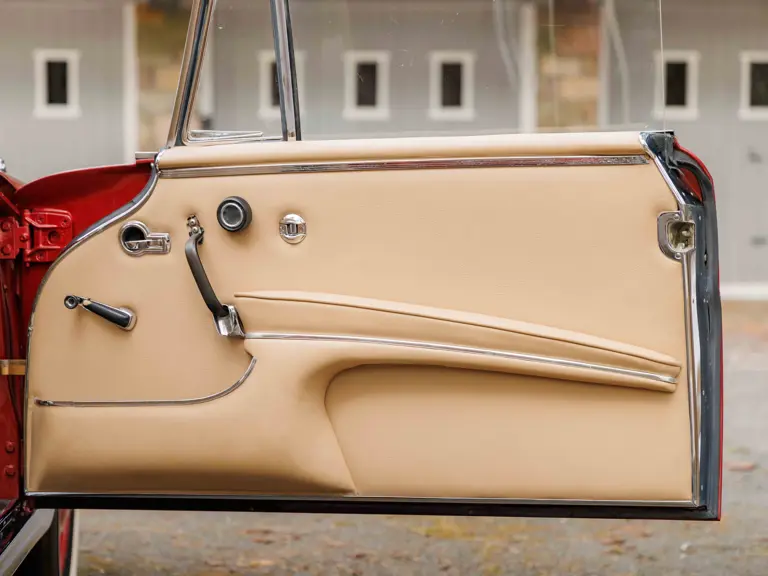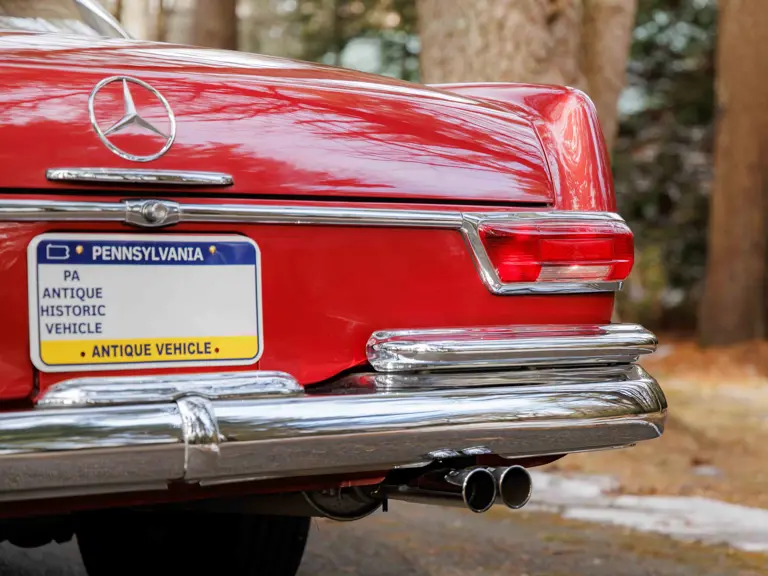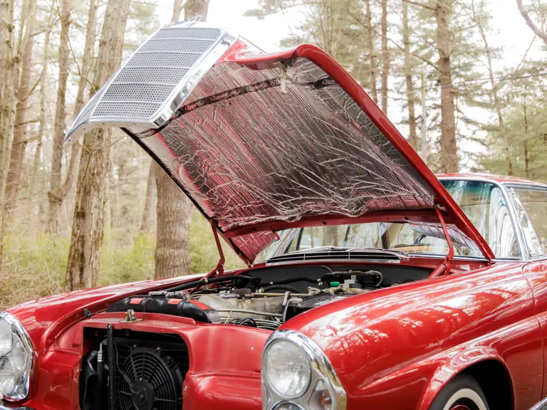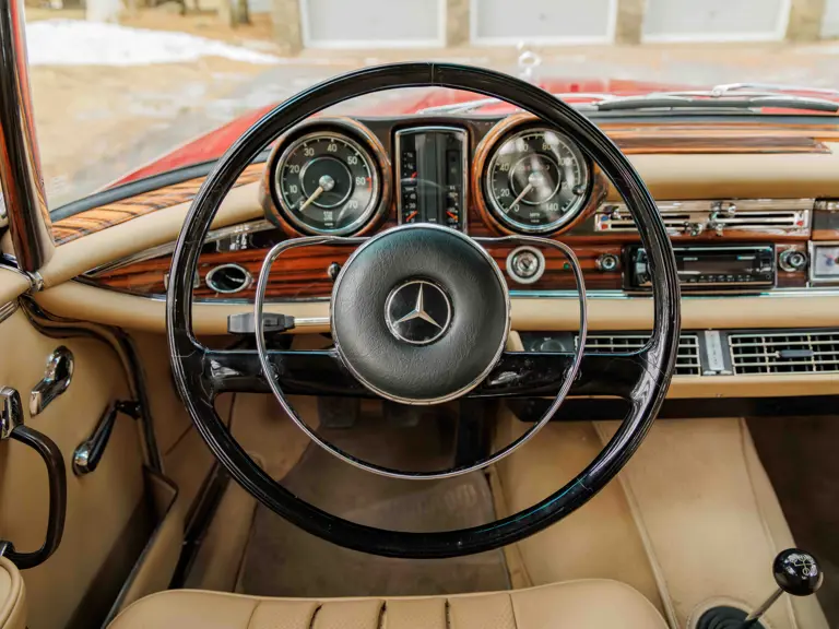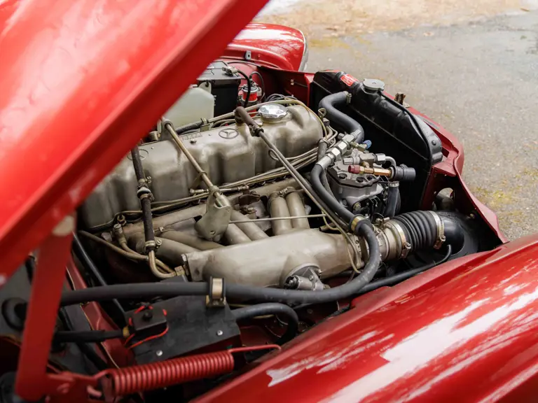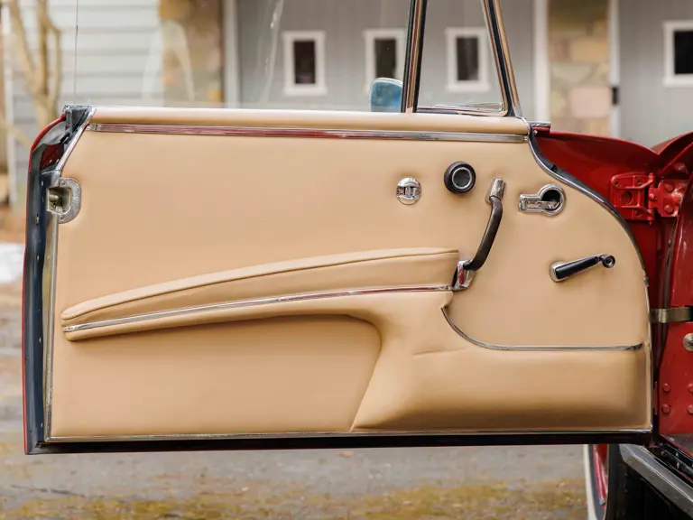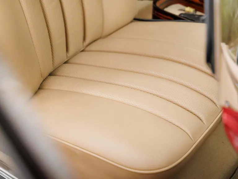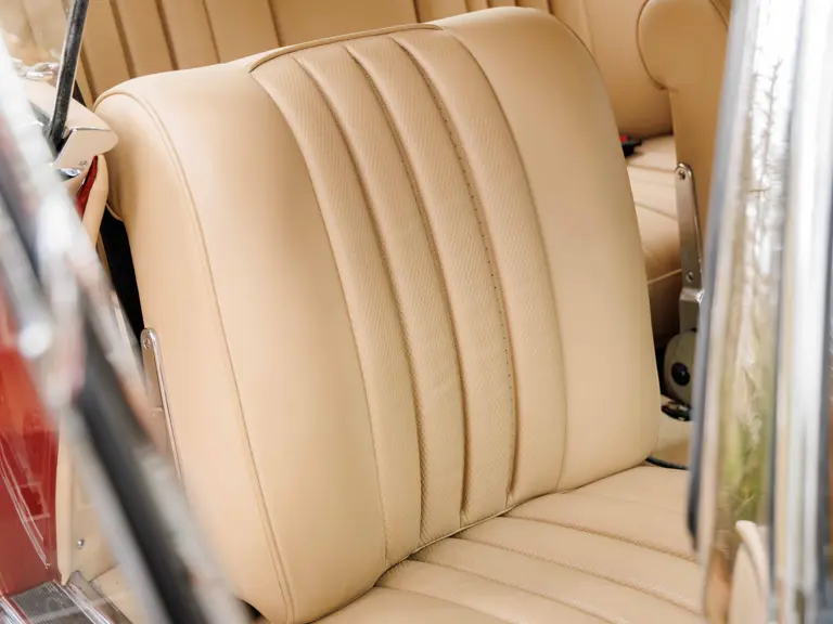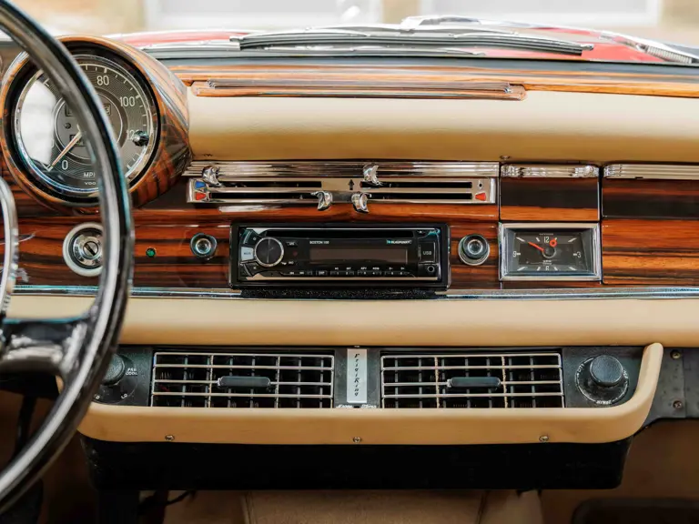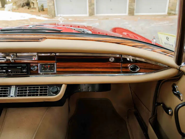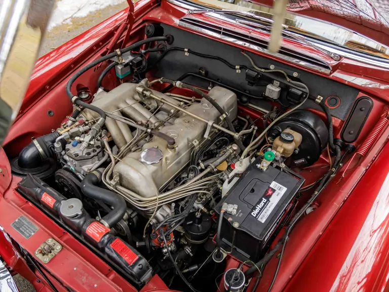 Beginning in 2013, the car underwent a comprehensive, ground-up restoration by Riga Master Workshop in Latvia. Scores of accompaning photographs document its careful disassembly to the bare metal chassis, followed by detailed metalwork and a refinish in its factory-correct Hellrot, or Light Red (DB-519). The restoration continued with a complete overhaul of all mechanical and electrical systems, including rebuilding the engine, transmission, rear axle, suspension, and brakes. Further work included new wiring, replated brightwork, a period-correct upgraded air conditioning system, and all-new beige leather upholstery by Leder-Reinhardt. The car is also equipped with a modern Blaupunkt AM/FM CD stereo, with a correct-type Becker Europa unit included with the sale.