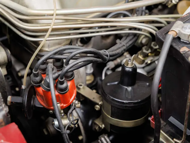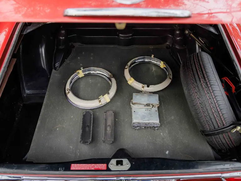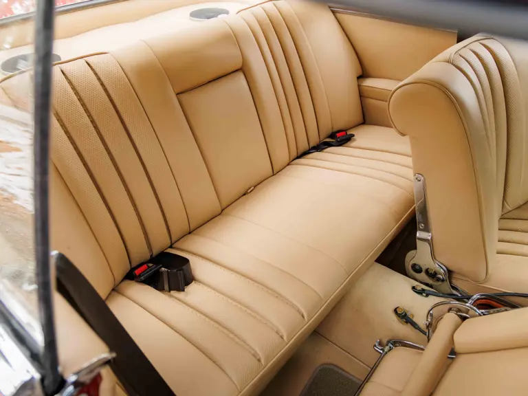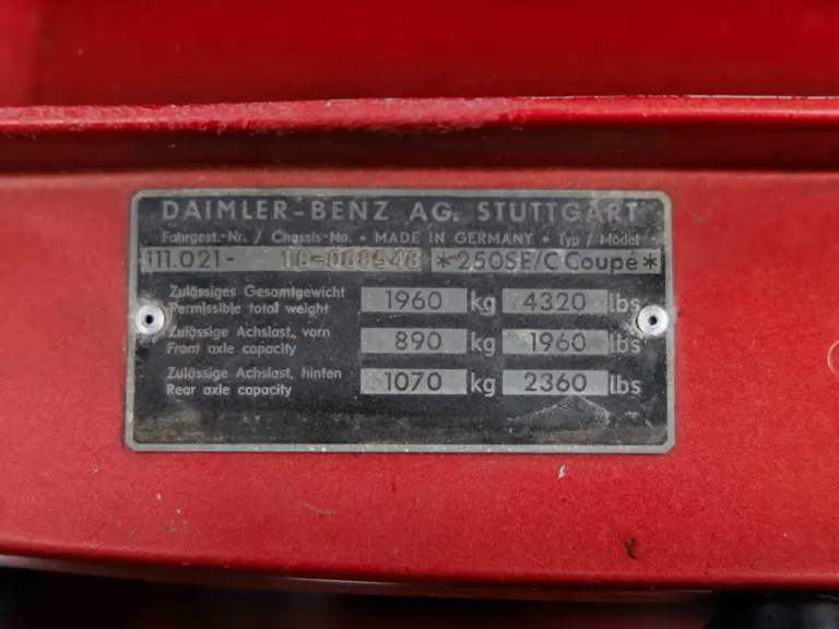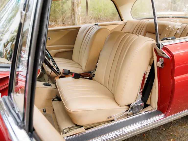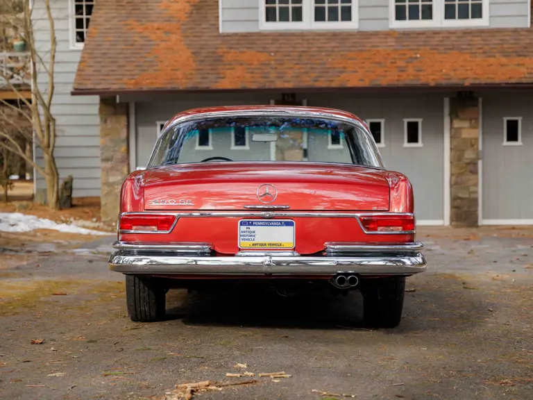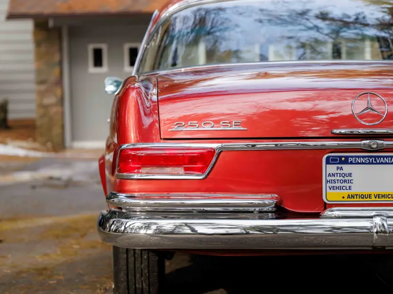 As recorded on a copy of its data card build record, this 250 SE Coupe left the factory finished in Light Red (DB-519) with black leather upholstery. Destined for the US market, it was equipped with a four-speed manual gearbox, bucket seats with front seatbelts, driver’s side exterior mirror, a Becker Europa radio, heat-insulated glass, and whitewall tires.