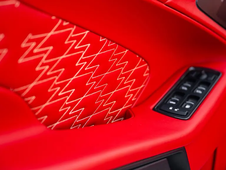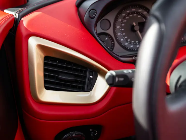 These details continue throughout the cabin with bronze-finished air vent bezels and graduated “Z” quilting on the seats and door panels underscoring the car’s coachbuilt craftsmanship. The result is a remarkably rare and meticulously specified example that displays just 137 miles at cataloguing.