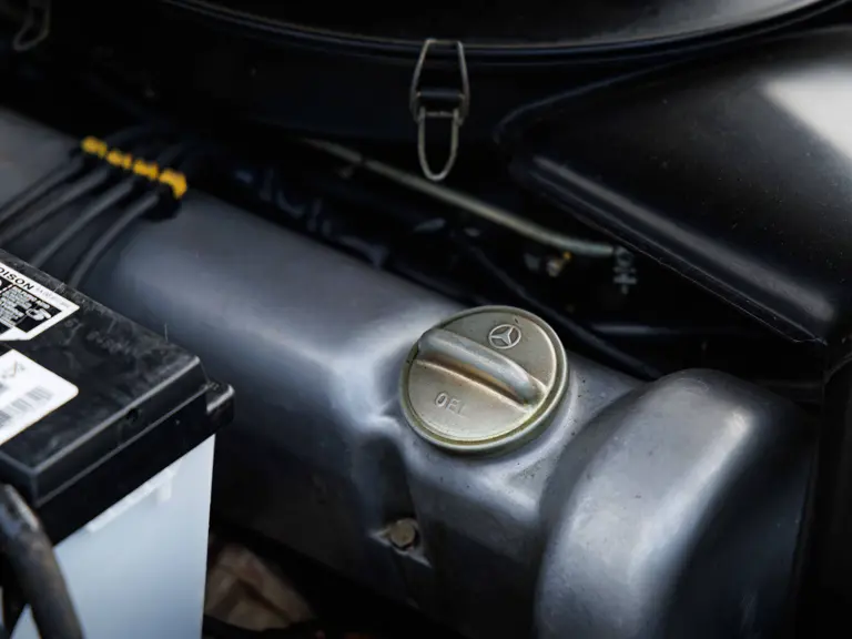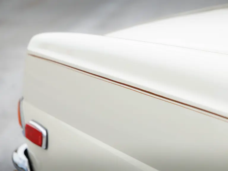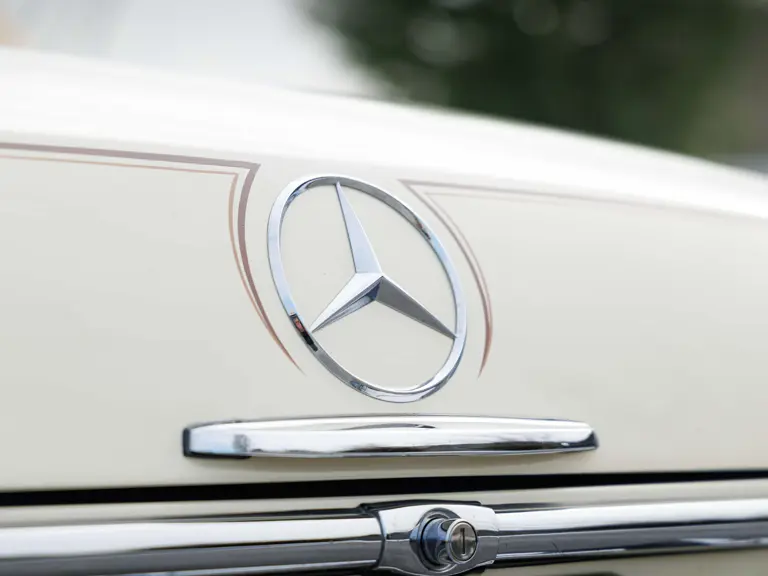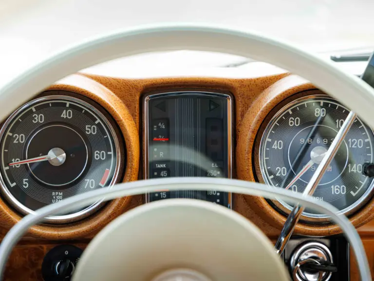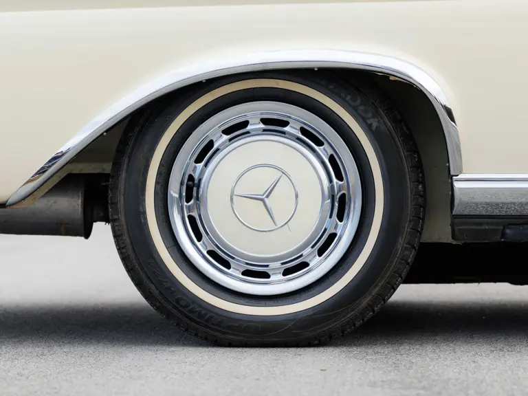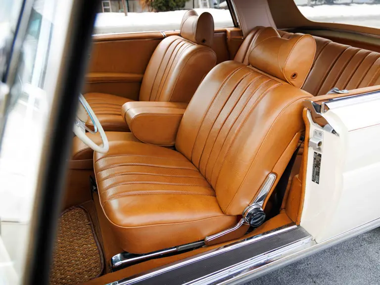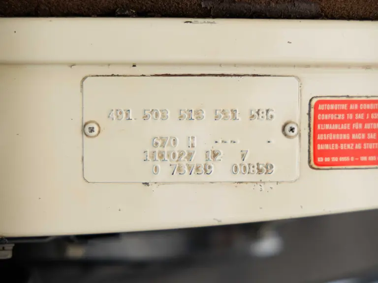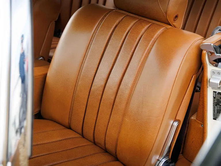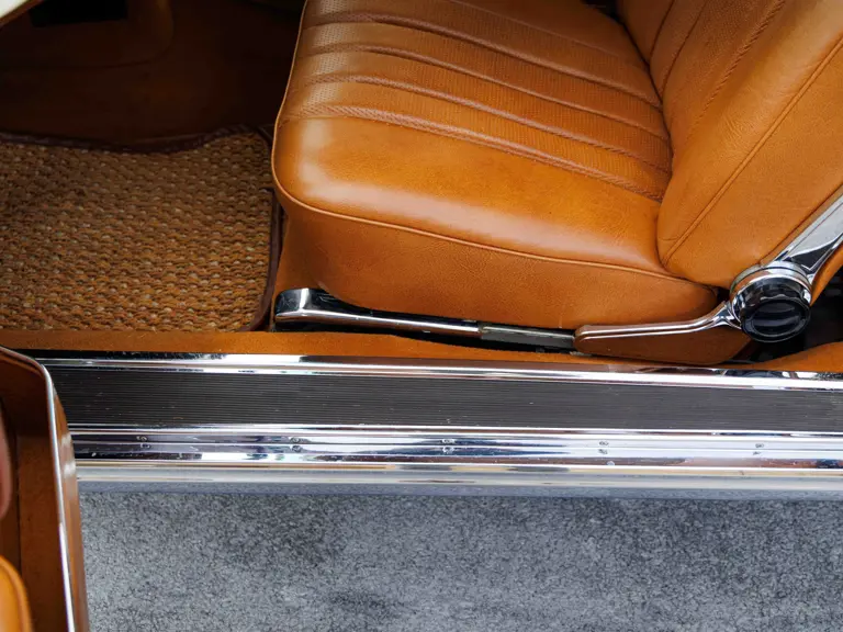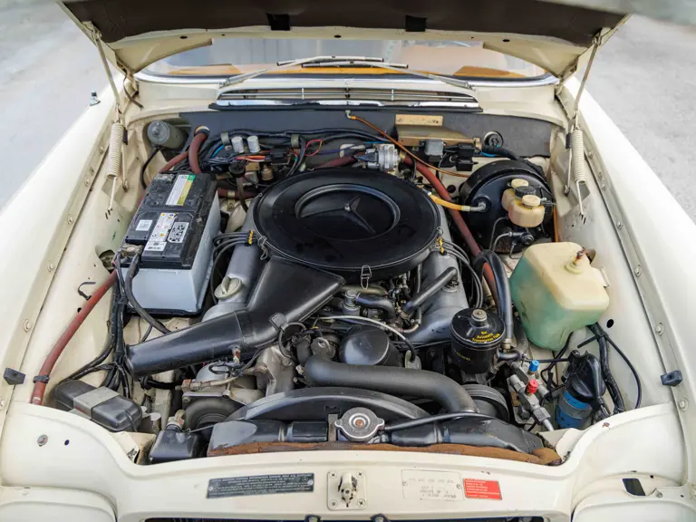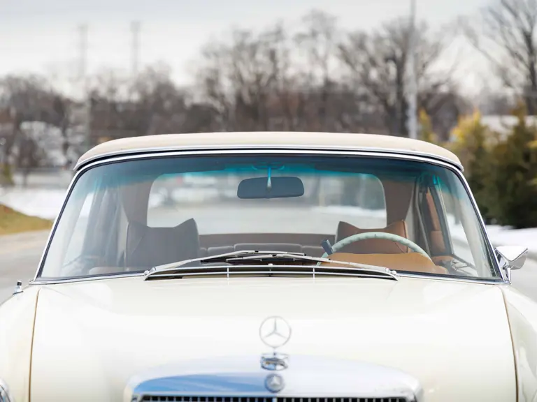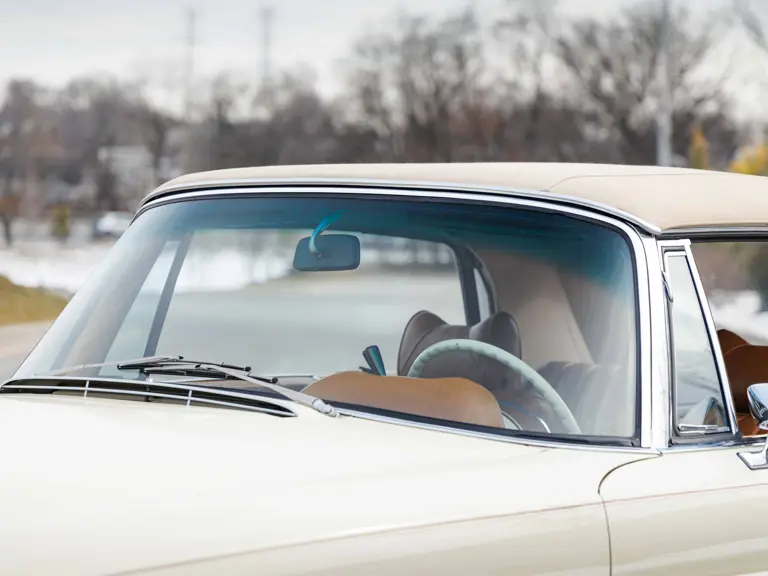 After four decades with its original owner, the Cabriolet was sold to Mercedes-Benz specialist Scott Melnick, who refreshed the Cognac leather interior and beige soft top before selling it to a prominent American automotive collection in 2016. The car has since been carefully enjoyed and meticulously maintained, with service invoices documenting regular upkeep prior to the consignor’s acquisition in 2022. Since then, the consignor has added a beltline pinstripe and chrome wheel lip trim moldings for a subtle, yet striking touch of flair. The car is accompanied by its original data card, owner identification plate, window sticker, manuals, service booklet, trim tag, tool roll, and California registration records tracing its history back to the original purchase.