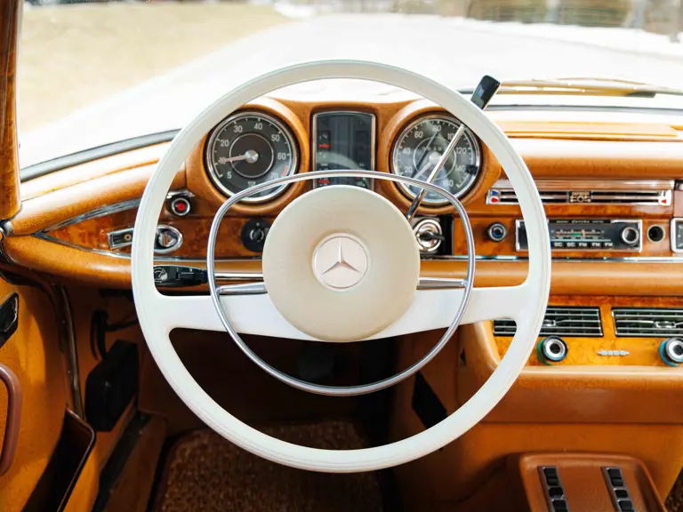 Exceedingly rare and crafted in the finest German tradition, the Mercedes-Benz 280 SE 3.5 Cabriolet is among the last of the company’s genuinely hand-built masterpieces. Featuring a mighty 3.5-liter V-8 engine, sumptuous leather upholstery, an insulated, carefully tailored soft top, and genuine solid hardwood trim, the 280 SE 3.5 delivers a driving experience marked by exceptional ride quality and handling that remain impressive even today.
