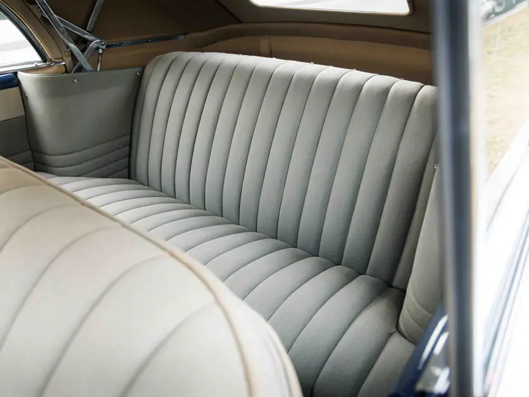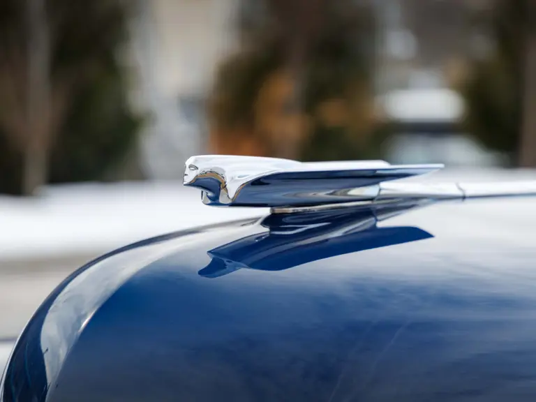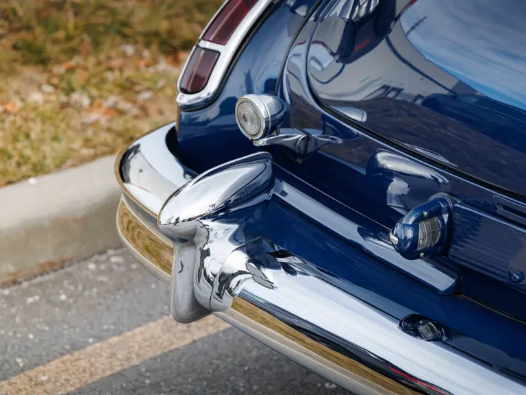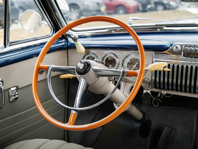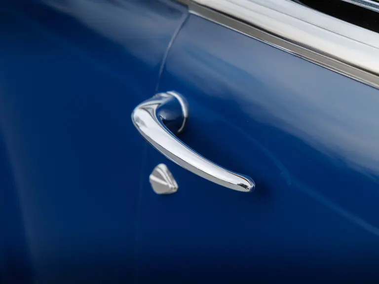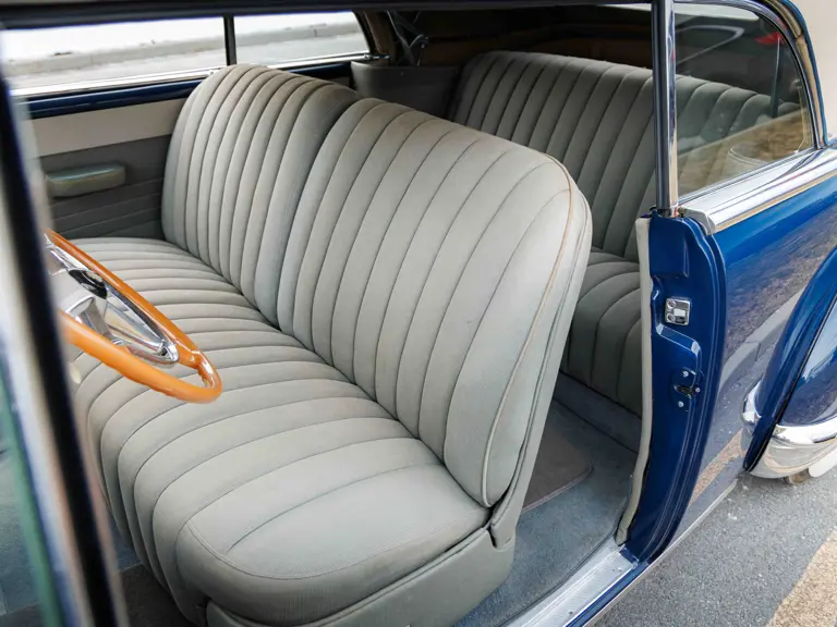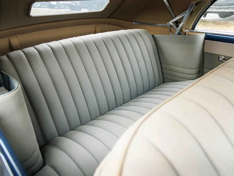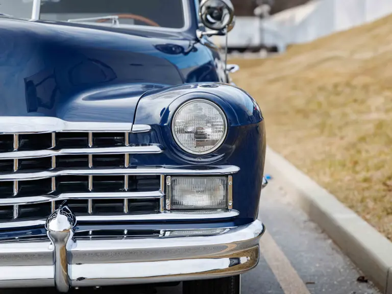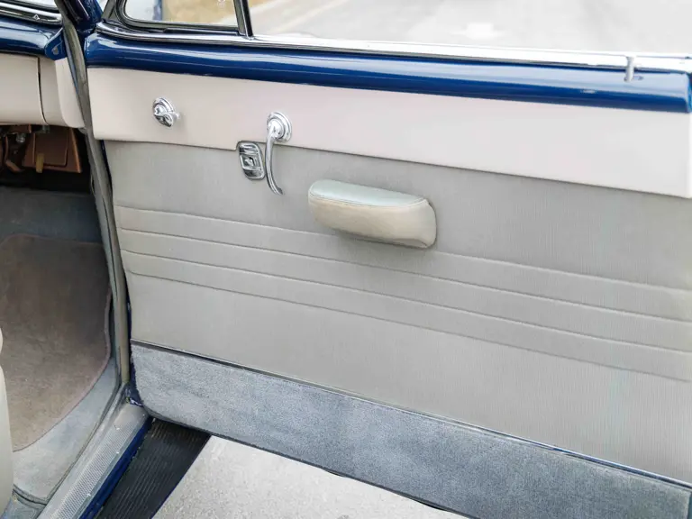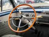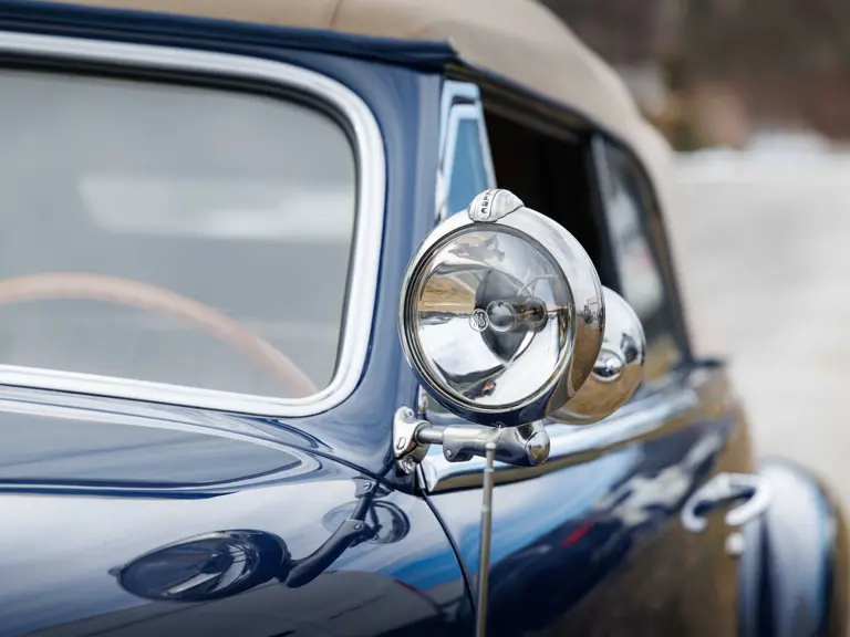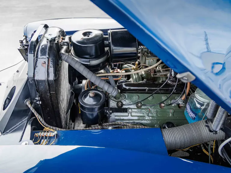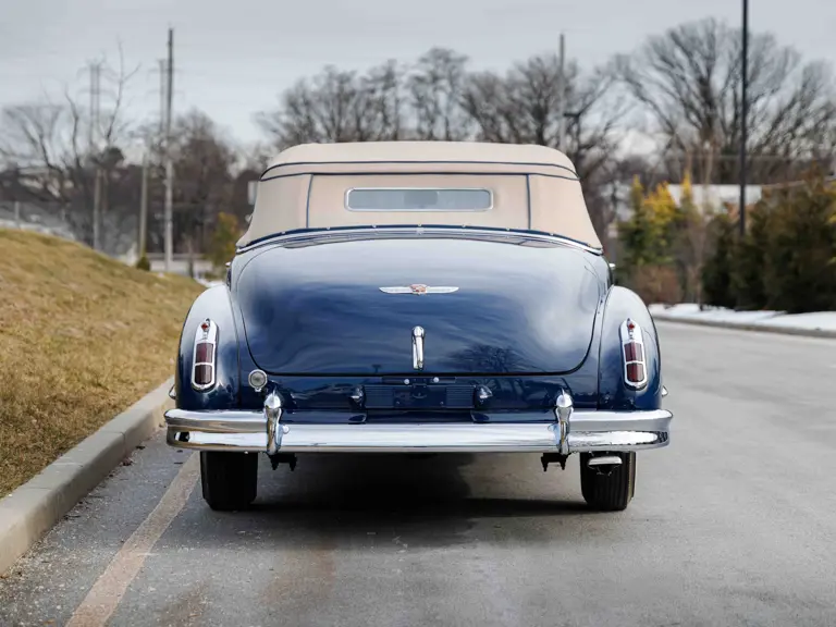 As documented by a copy of its factory build sheet, this Cadillac Series 62 Convertible was delivered new to Chicago on 17 January 1947 finished as it is today in Belden Blue Metallic over Gray Bedford Cord with a tan convertible soft top and equipped with a Hydra-Matic transmission, radio, power windows, Group C Accessory Group, fog lights, and an under-seat heating system. The car is said to have received an extensive body-on restoration in the early 2000s by Rich Fass’s Stone Barn Automobile Restoration in Vienna, New Jersey which saw it returned to its handsome factory specification.