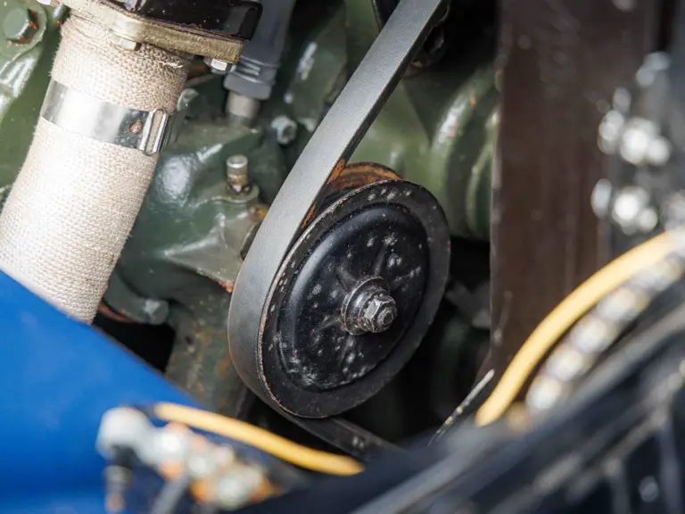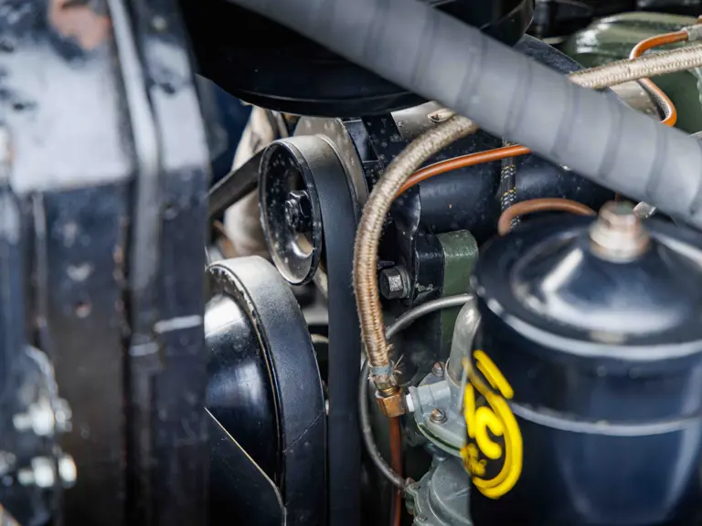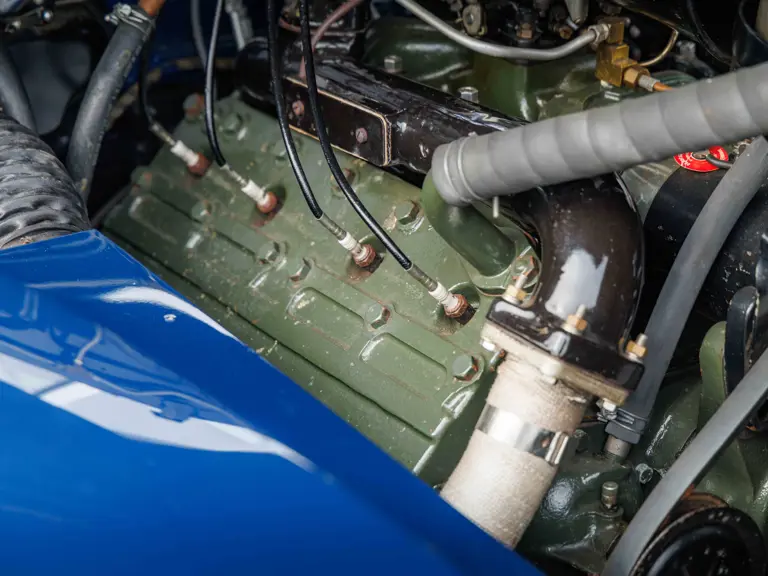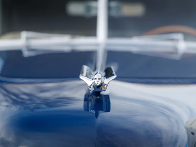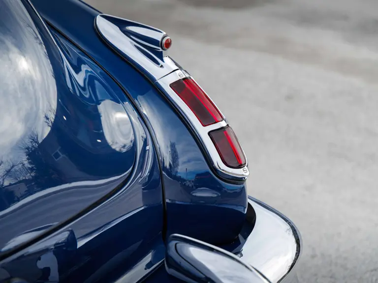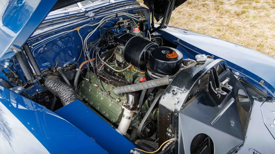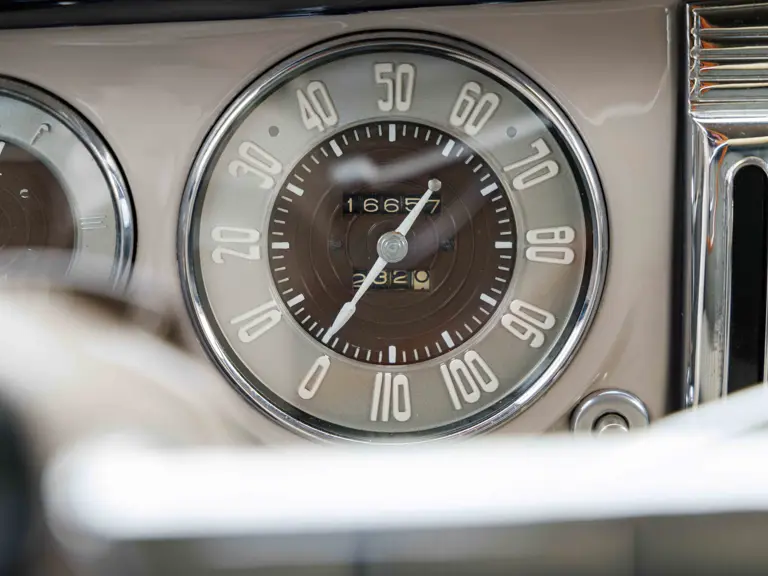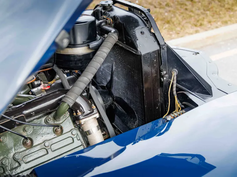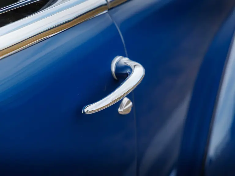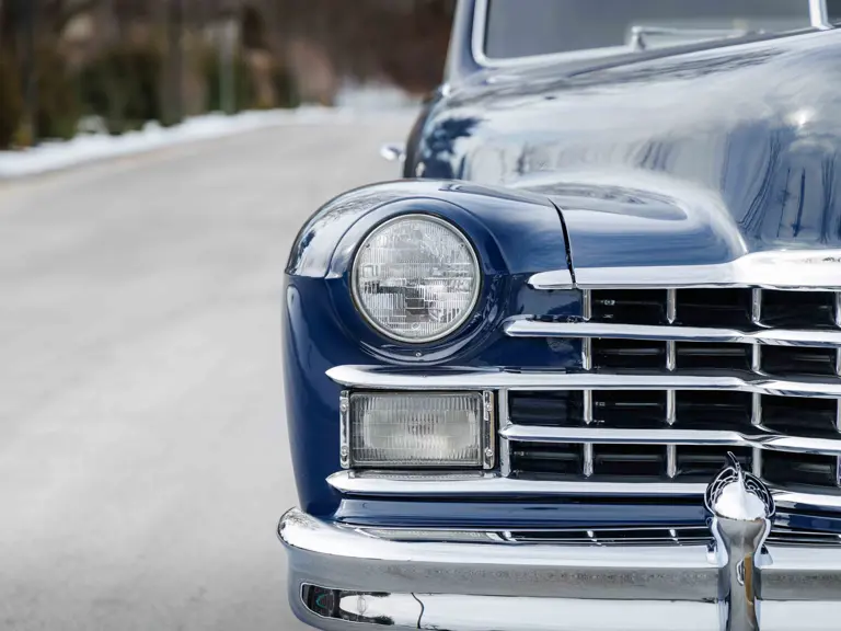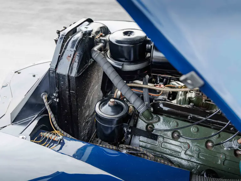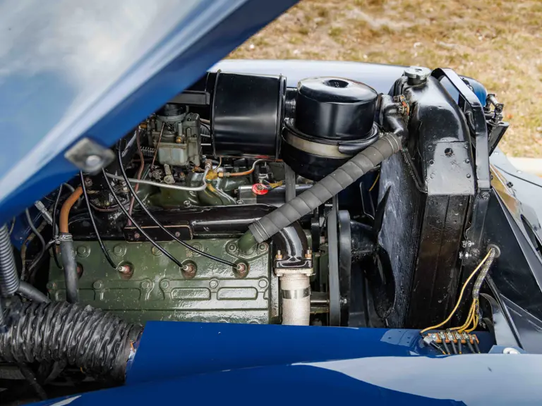 As documented by a copy of its factory build sheet, this Cadillac Series 62 Convertible was delivered new to Chicago on 17 January 1947 finished as it is today in Belden Blue Metallic over Gray Bedford Cord with a tan convertible soft top and equipped with a Hydra-Matic transmission, radio, power windows, Group C Accessory Group, fog lights, and an under-seat heating system. The car is said to have received an extensive body-on restoration in the early 2000s by Rich Fass’s Stone Barn Automobile Restoration in Vienna, New Jersey which saw it returned to its handsome factory specification.