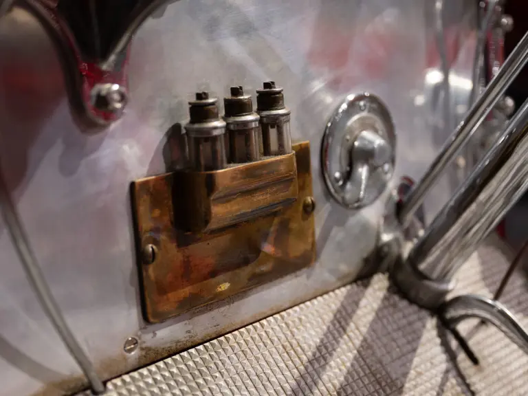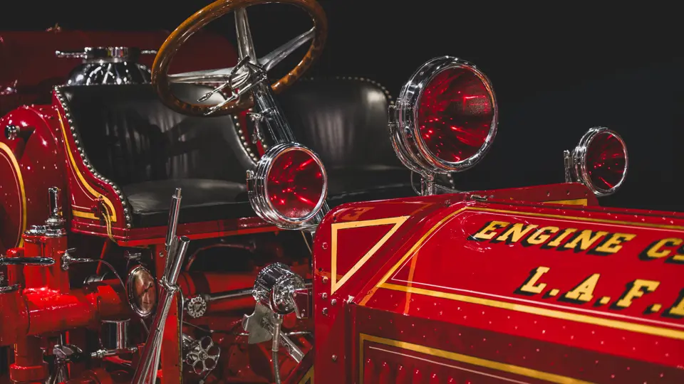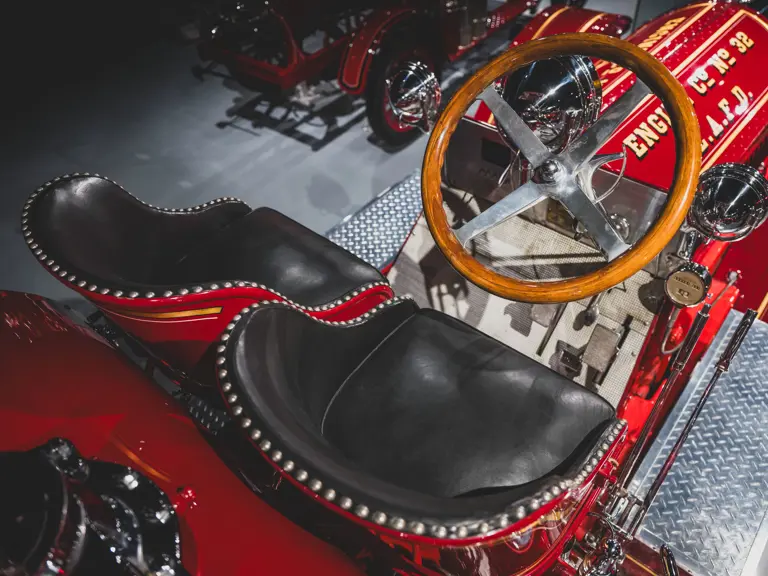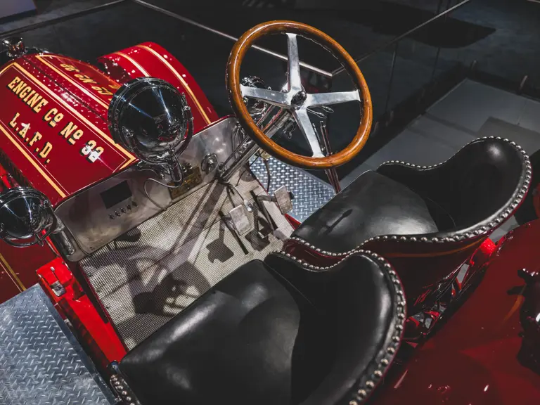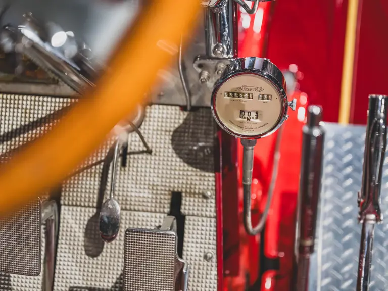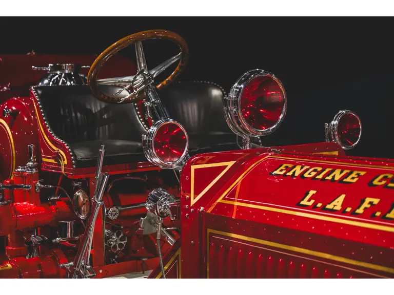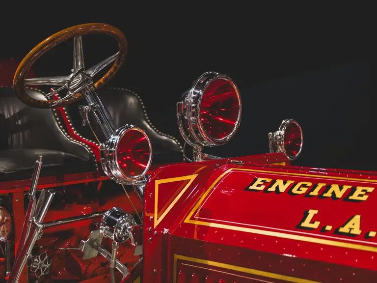 The apparatus was professionally restored in the 1980s for the American LaFrance Corporate Collection by the late Jim Cox of Sussex Motor & Coach Works in Matamoras, Virginia, a highly regarded craftsman and shop. It appears to have had some use since completion, likely for promotions during the Figgie Corporation’s years owning American LaFrance, and displays some gentle wear to the body, paint, and brightwork. While missing most of its original accessories, likely due to updating during its original service, it is complete with some particularly rare equipment, notably the correct head, spot, and warning lights used by the Los Angeles Fire Department. Having not been operated in recent years, the Type 12 should be serviced prior to use.