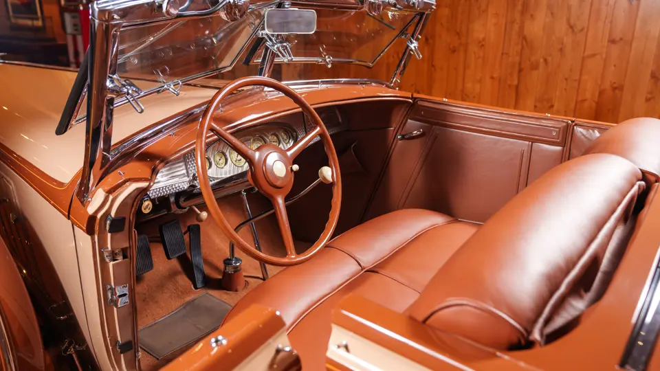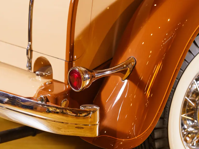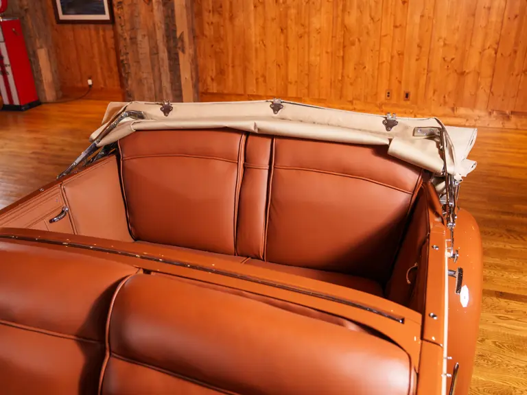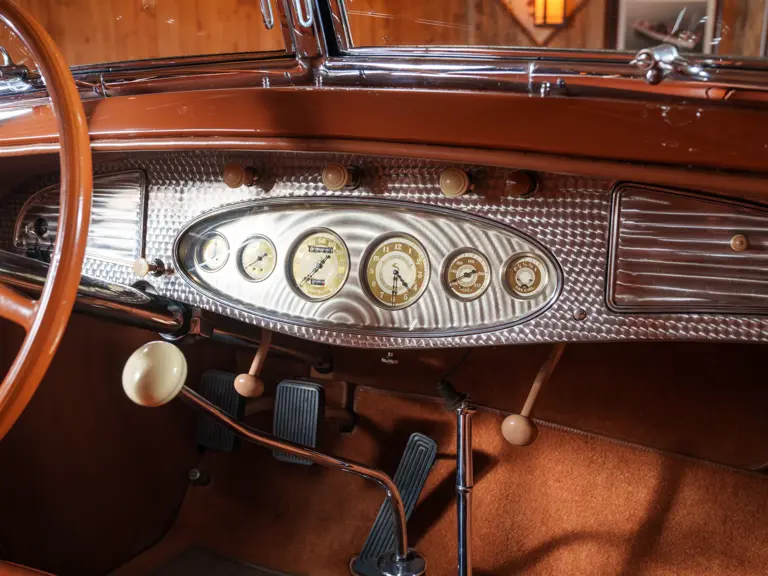 With the Imperial being, at the time, only 13 years old, Melton had some trouble having it “restored.” He first entrusted a local body shop with the task but, aside from the application of a beautifully subtle cream and cocoa paint scheme, was unsatisfied with the results. Finally, he called up his friends in engineering at Chrysler Corporation and Briggs (the parent company of LeBaron), and they told him to send it to the factory. It was returned to Melton three months later, completely restored by the men who had built it originally, with Spike Briggs even having correct, all-new hardware made for it from the original drawings! As owners had experienced some difficulty with the original overdrive transmission from 1933, in Melton’s car Chrysler engineers fitted an overdrive truck transmission, which worked splendidly.