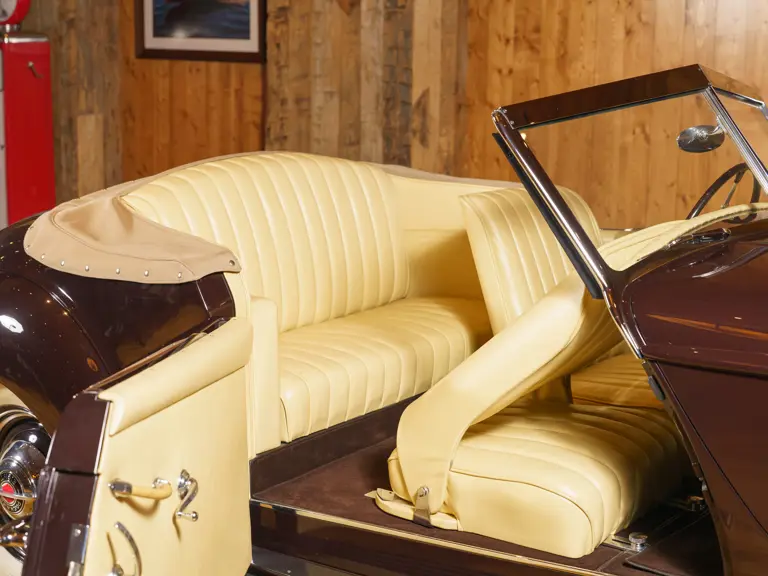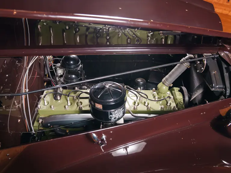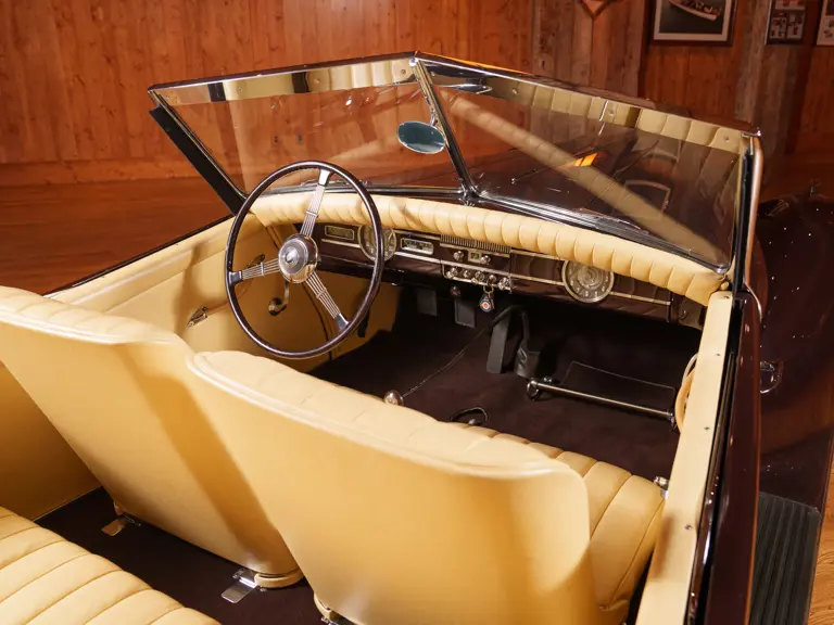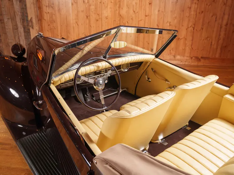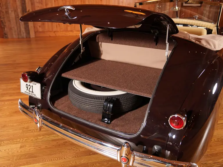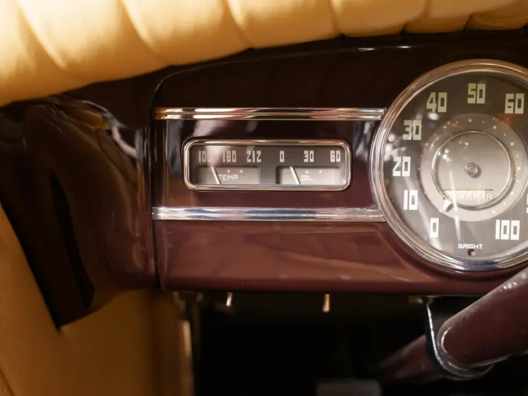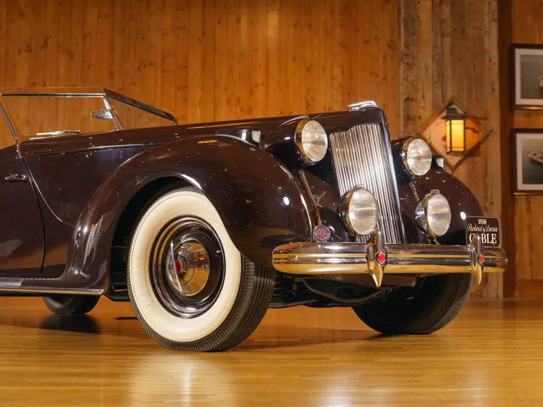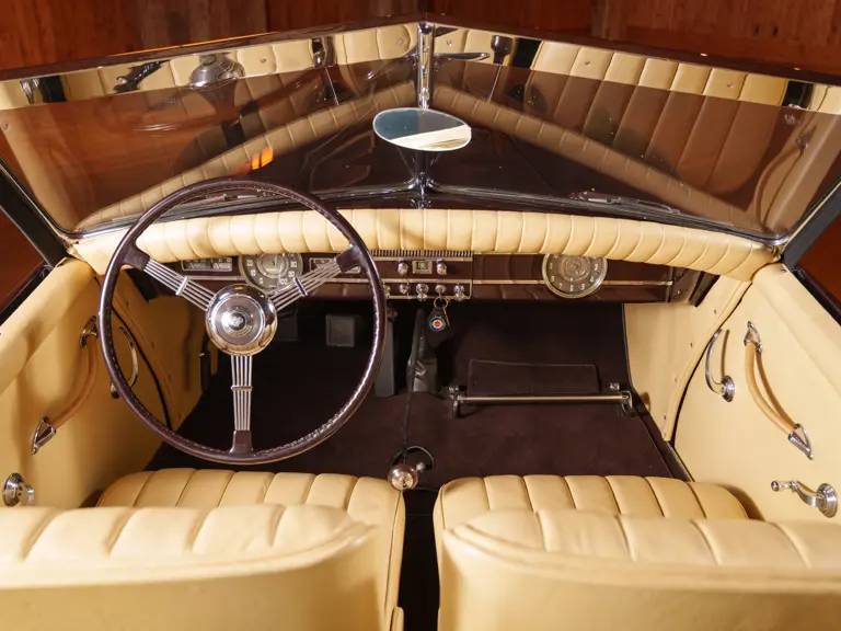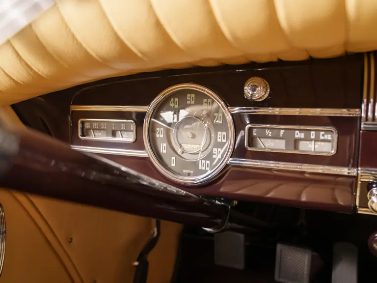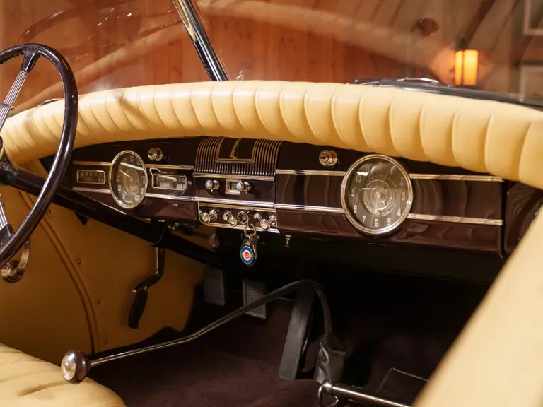 Following many years of enjoyment, the Broadheads sold the Gable Darrin in 1982 to the colorful automotive impresario Ted Leonard of Warwick, Rhode Island, with whom it remained until the Leonard collection was dispersed in the spring of 2009. A year later, following the untimely passing of its intervening owner, it was purchased by the current owner, who submitted the prized Packard to the legendary Fran Roxas of Alsip, Illinois. For a half-century one of America’s most respected craftsmen, Mr. Roxas meticulously restored the car to concours condition. It was proudly debuted at the 2014 Pebble Beach Concours d’Elegance, to much attention and acclaim. Largely exhibited since in the owner’s collection, the Packard’s Roxas restoration remains well-preserved, and it awaits continuing its career on the concours and club circuit.