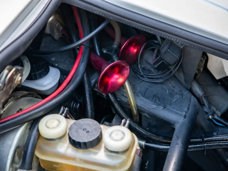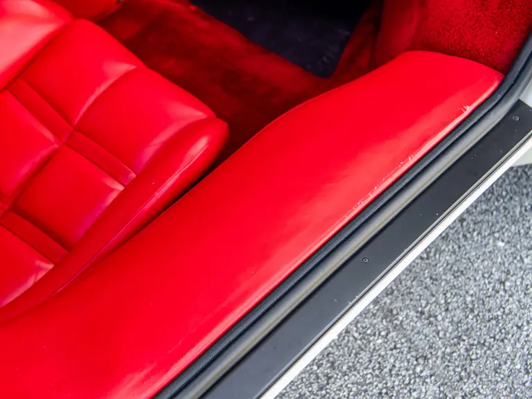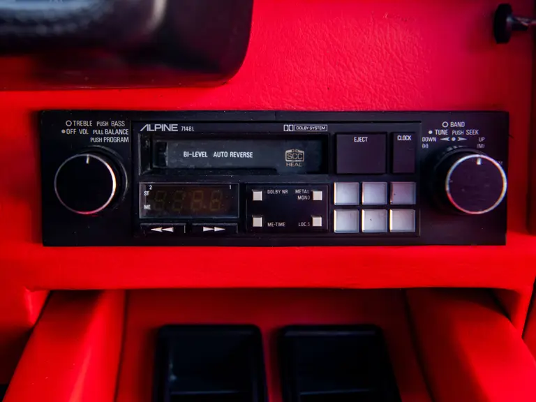 The 5000 S was to be Mr. Nastasi’s personal car, and he therefore commissioned a special rear-end treatment (despite some resistance from the factory) with the standard rear panel being replaced with a red acrylic section. Dispatched in June 1984, this European-specified example was furthermore equipped with a straight-through Ansa F1-style sport exhaust and finished in the dynamic color combination of Bianco Perlato paint over a rosso interior, with complementary Bianco Perlato wheels.