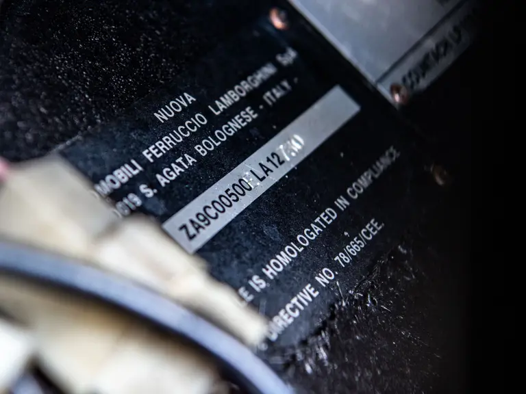 It is worth noting that, per engine stampings corresponding to factory data, this Lamborghini is fitted with its matching-numbers engine. Currently displaying an impressively low mileage of just 6,026 kilometers (~3,745 miles), the arresting 5000 S continues to benefit from the expert work conducted in the mid-2010s and 2023, and it is further distinguished by its identity as the more-powerful European-specified version.