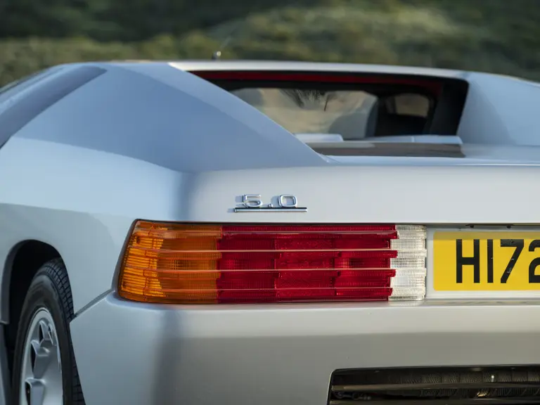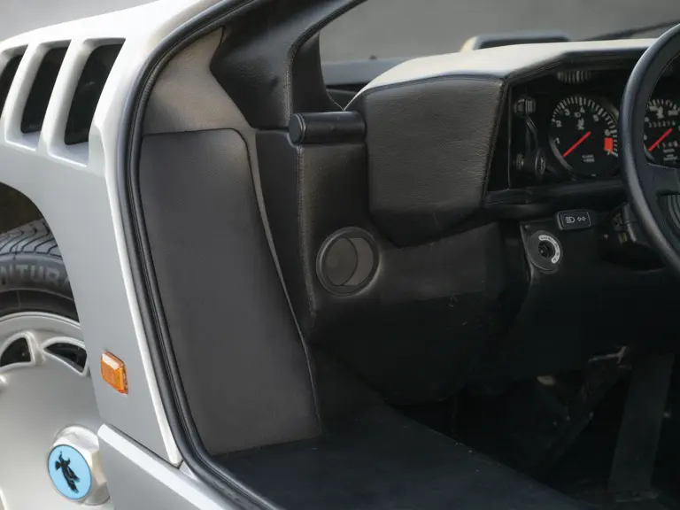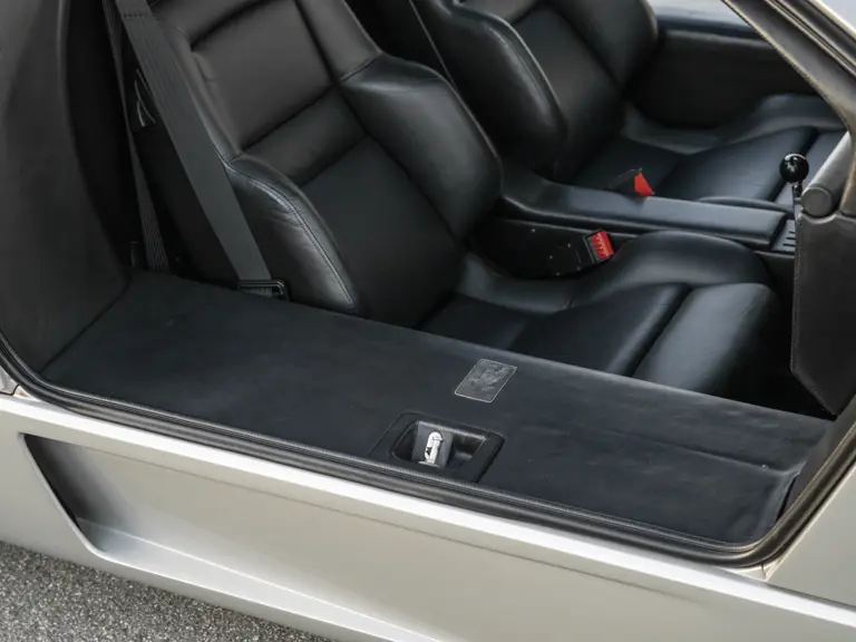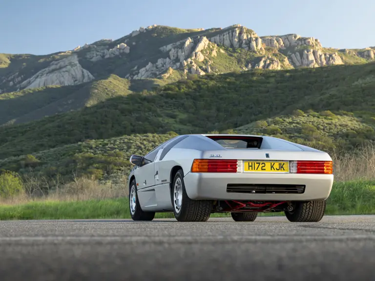 The example on offer is a later Series 2 Imperator 108i, immediately recognizable by its pop-up headlamps and dramatic swept twin-exit exhaust on the passenger side. Discerning enthusiasts will further note its softened body lines, enlarged front grille, sculpted wheel-arch vents, and offset NACA duct integrated into the hood. Together, these refinements create a car that blends the audacious spirit of a prototype with the sophistication of production engineering.