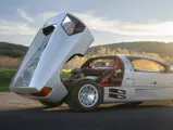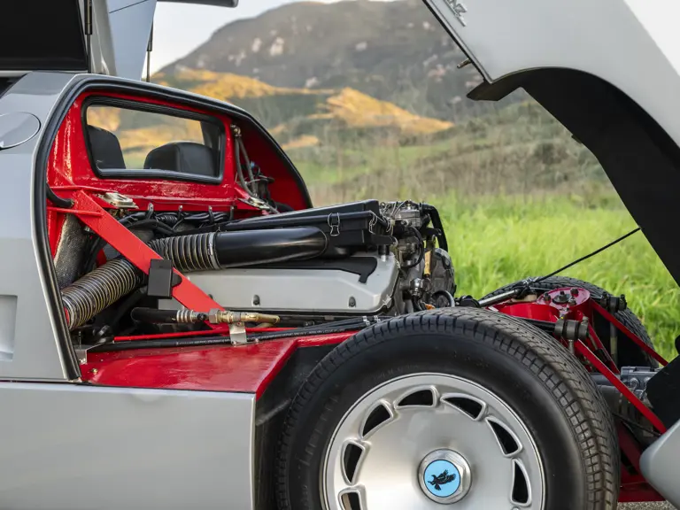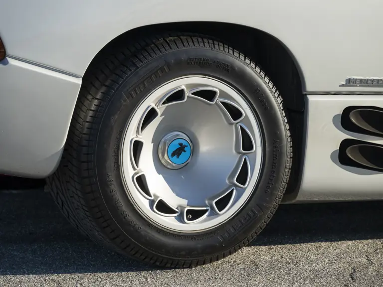 By the early 1980s, Schulz decided to forge his own path and established Isdera, a company dedicated to small-scale production vehicles, design, and engineering services. Two years later, the firm introduced the Imperator 108i, a car representing the culmination of Schulz’s vision. Over the subsequent nine years, only 30 examples would be produced, each undergoing subtle design revisions and powered by rear mid-mounted V-8 engines sourced from Mercedes-Benz. All were constructed around a tubular steel spaceframe clad in bonded fiberglass, and each retained the car’s signature gullwing doors, an enduring hallmark of Isdera’s design language.