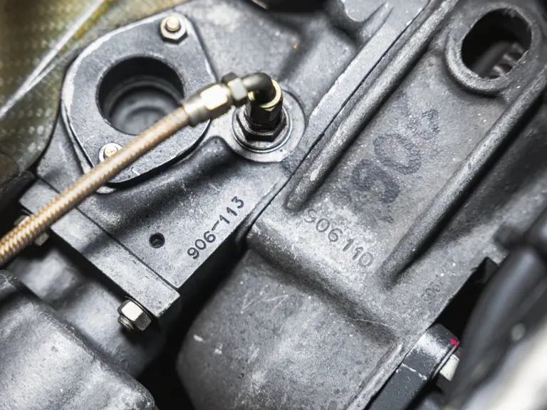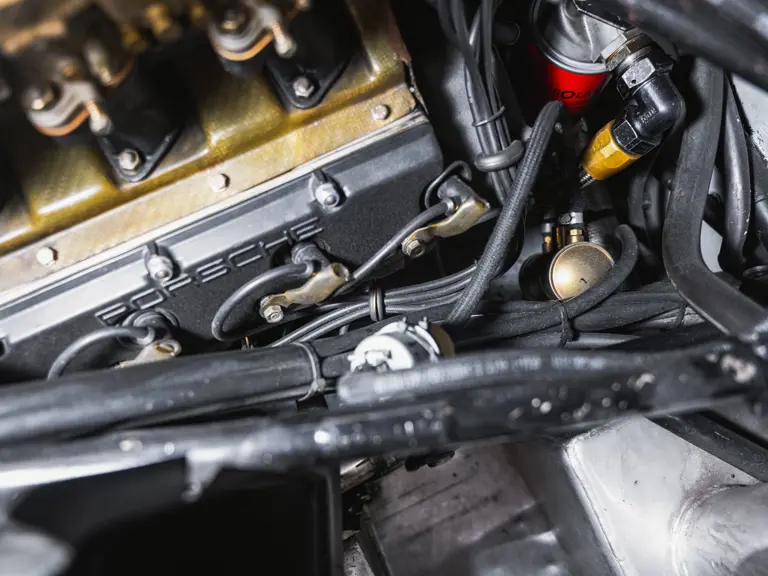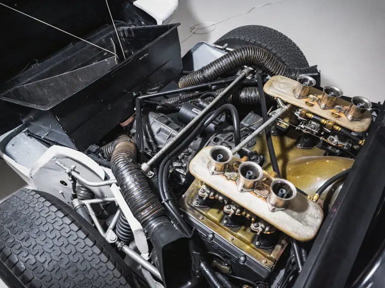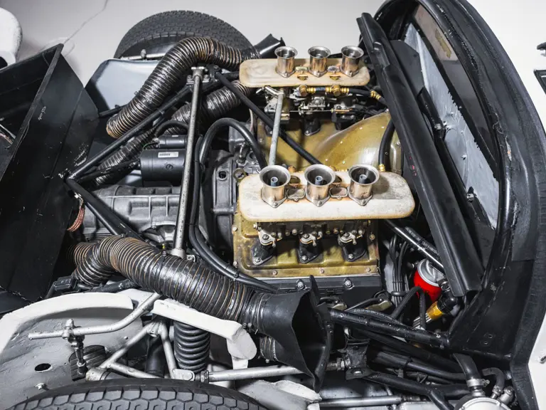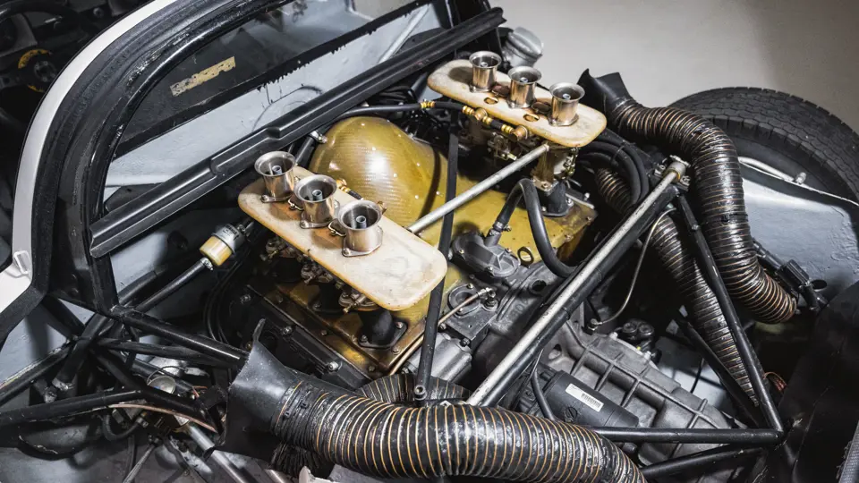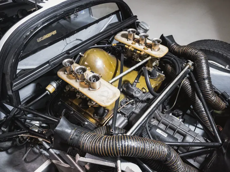 As with other customer-specification 906s, 906-115 was fitted with a six-cylinder Type 901/20 engine, which employed a sand-cast magnesium elektron crankcase, forged steel crankshaft, titanium connecting rods, forged alloy pistons, and dry-sump lubrication. A compression ratio of 10.3:1 afforded a power output of some 210 horsepower at 8,000 rpm, while a five-speed Type 906/1 gearbox transmitted this to the road.