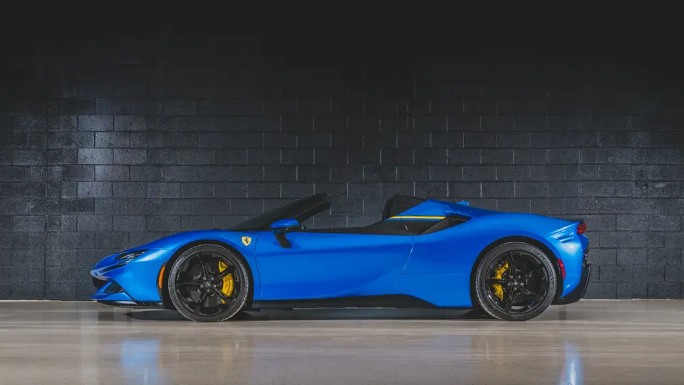 The SF90 Stradale made its public debut in 2019, followed in November 2020 by the SF90 Spider. The Spider features Ferrari’s latest retractable hardtop design, engineered to preserve the coupe’s proportions and structural integrity while offering the thrill of open-air driving. The lightweight aluminum roof operates in just 14 seconds, is 88 pounds lighter than conventional systems, and occupies minimal space when stowed beneath the rear deck. The result is a highly accomplished open-top supercar that retains the performance and technical sophistication of the original Stradale.