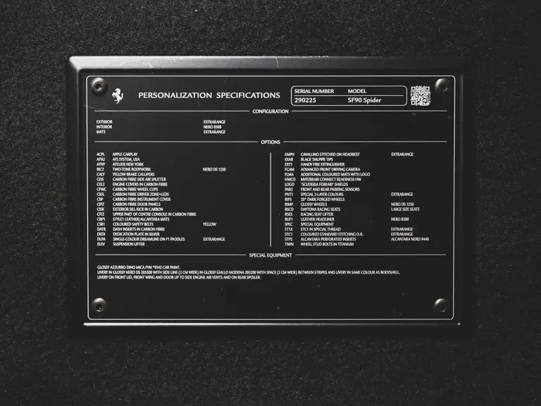 - One-of-one specification, with nearly $178,000 in customized features ordered through Ferrari’s Atelier program