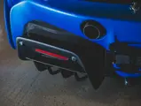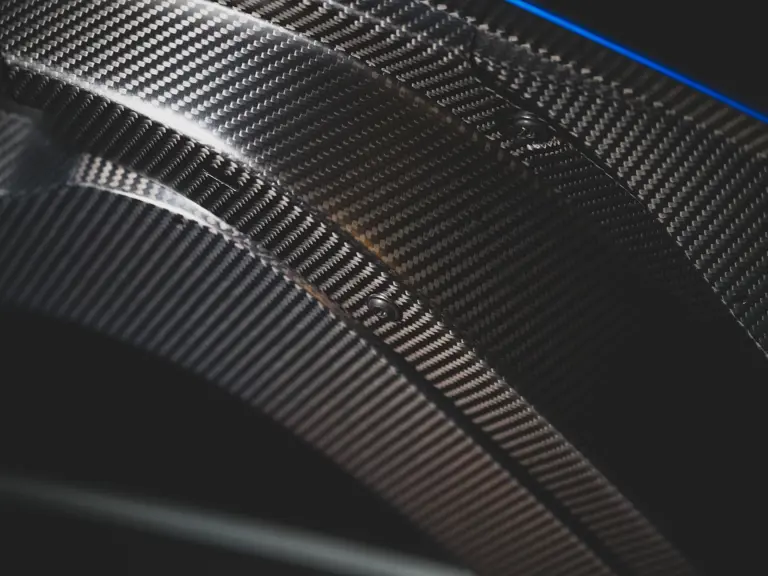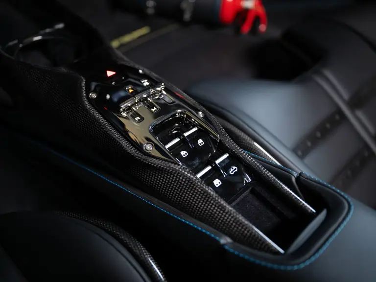 - Bespoke details include copious exposed carbon fiber elements, gloss black forged wheels, black tailpipes, and yellow brake calipers