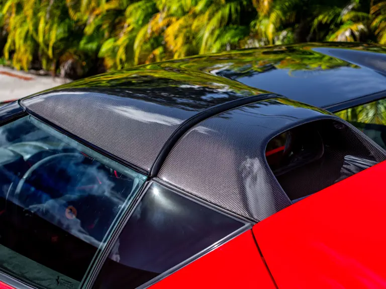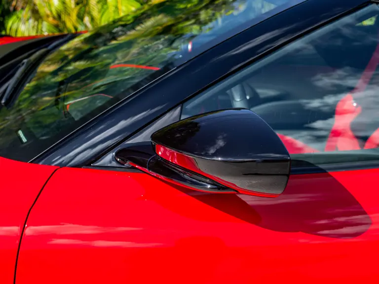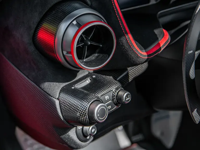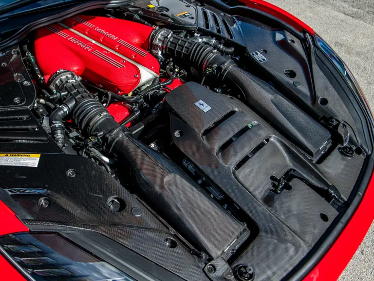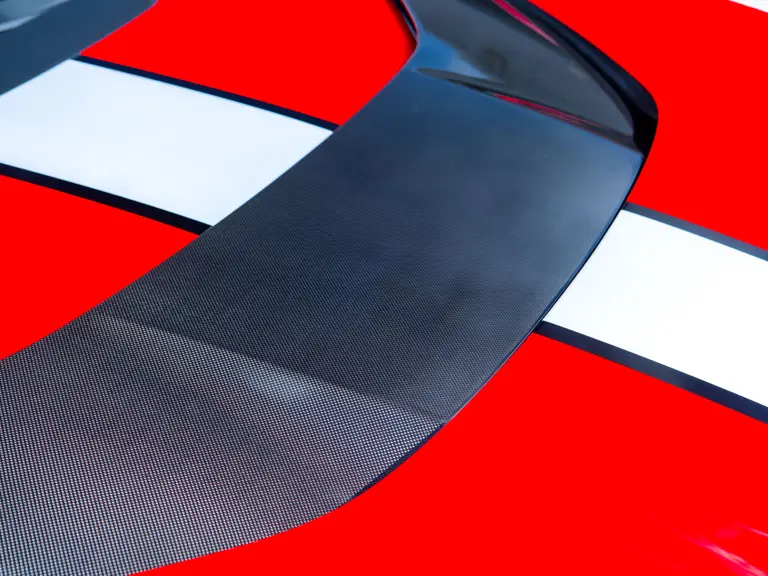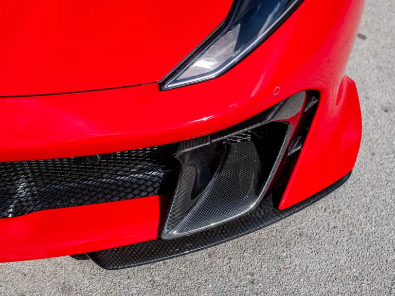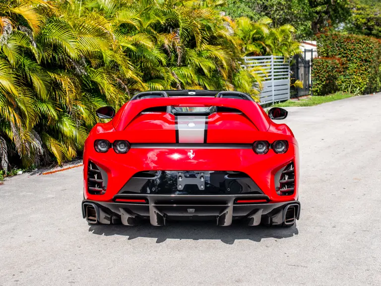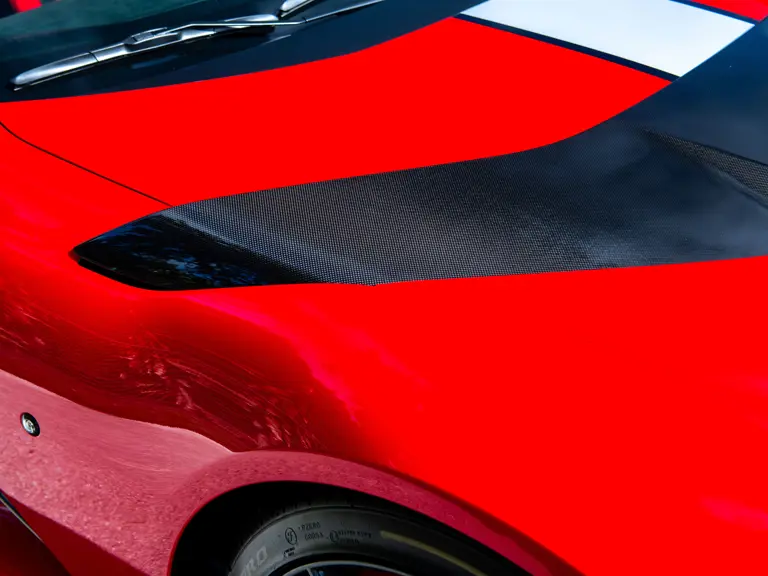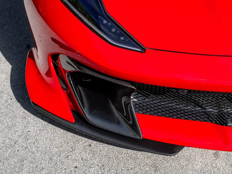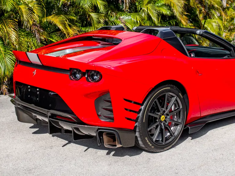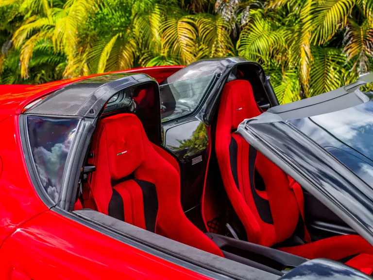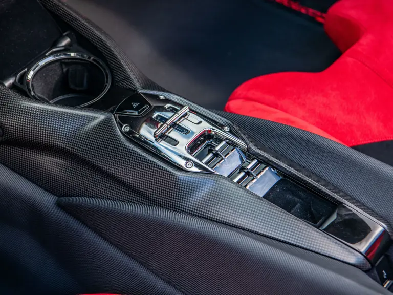 Carbon fiber features prominently throughout the specification, including the hardtop, rear diffuser, under-door covers, front air intakes, and engine and airbox covers, with the entire ensemble meeting the pavement via Rosso Scuderia brake calipers lurking behind 20-inch carbon fiber wheels shod in Grigio Pirelli Color Edition tires.