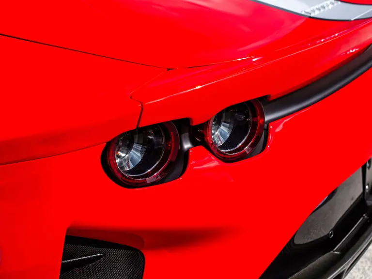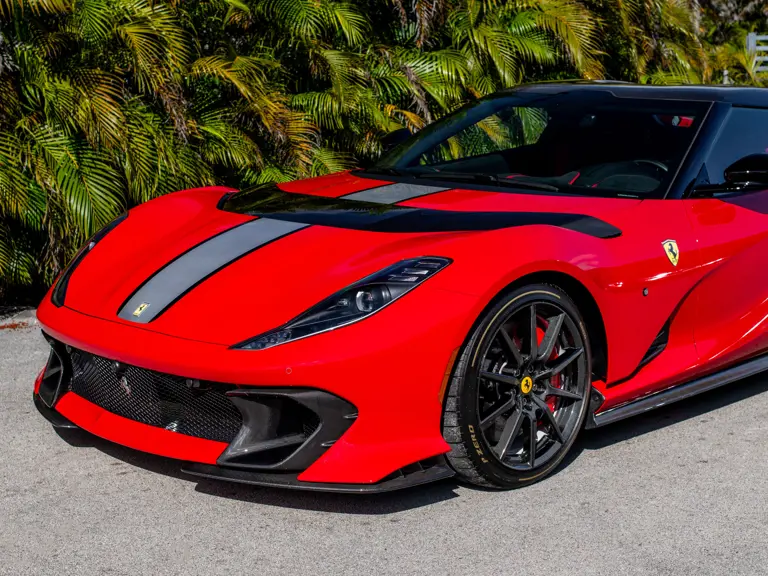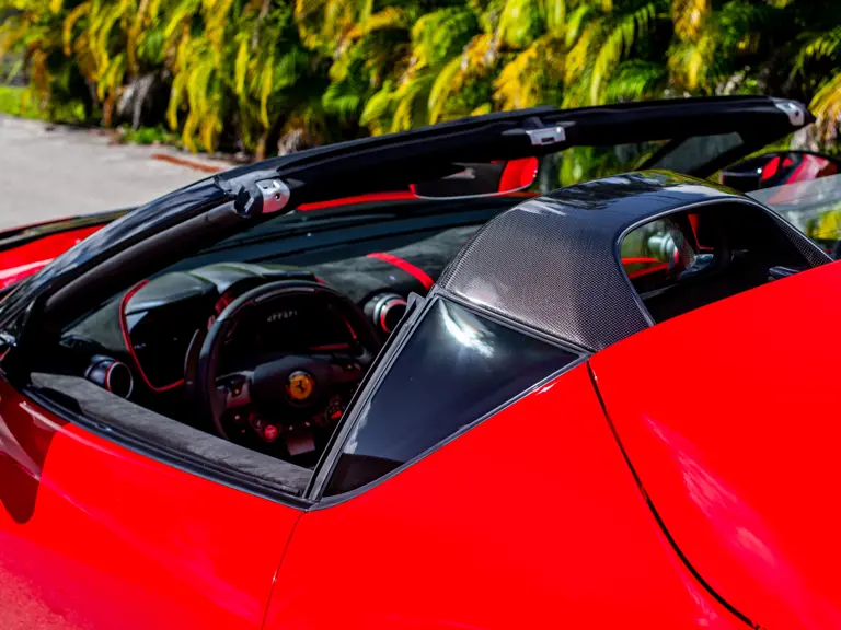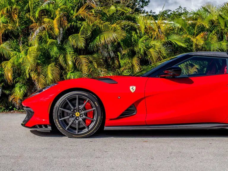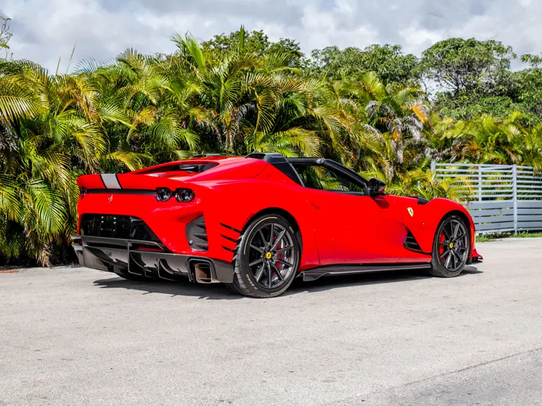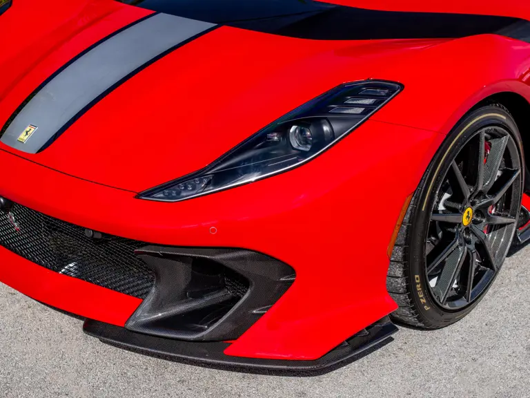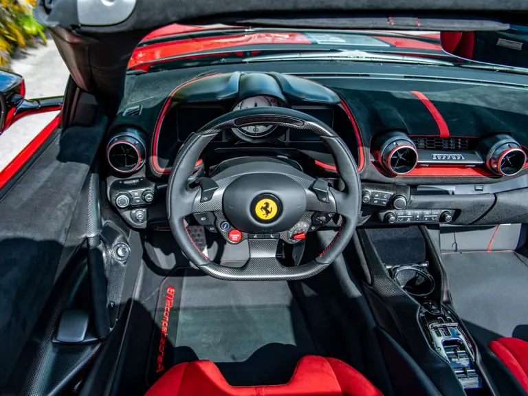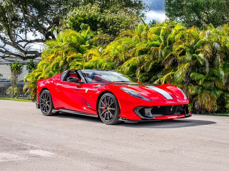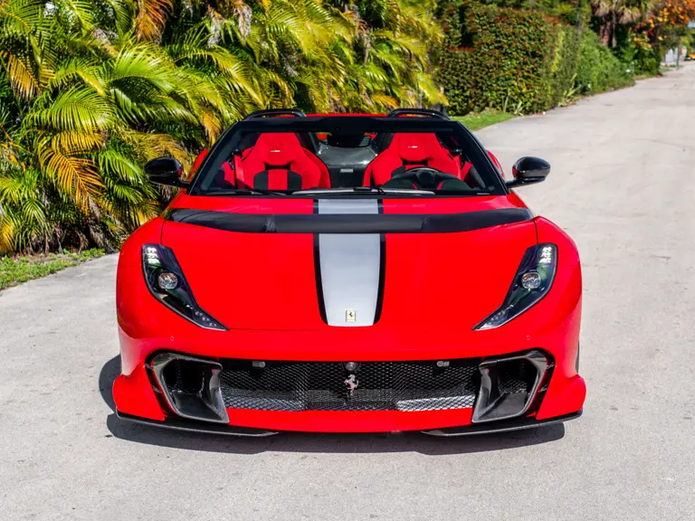 Displaying just 95 miles at the time of cataloguing, the 812 Competizione A on offer strikes a commanding presence in Rosso Corsa (DS 322) with a Nero and Argento Nürburgring racing stripe over a Nero and Rosso Alcantara interior. The car is enhanced by nearly $150,000 in factory options, including Scuderia fender shields, parking cameras, a front suspension lift system, and adaptive LED headlights.