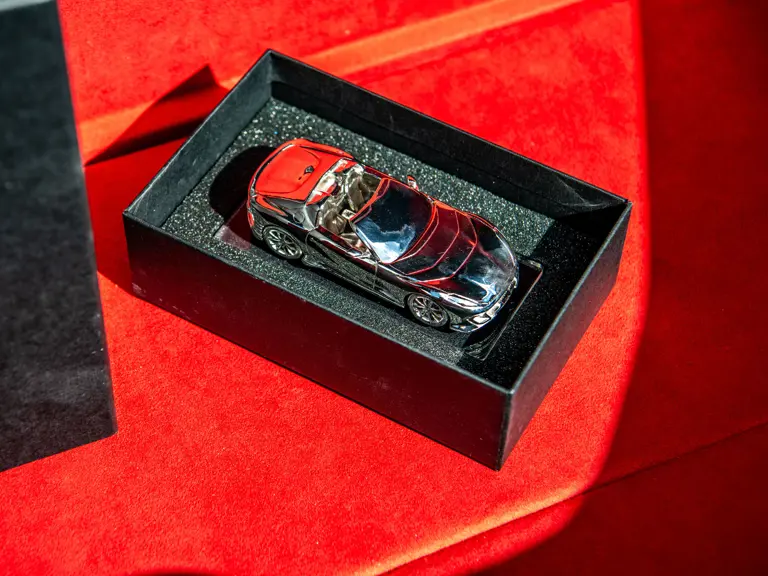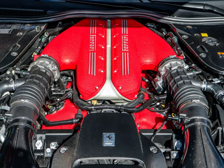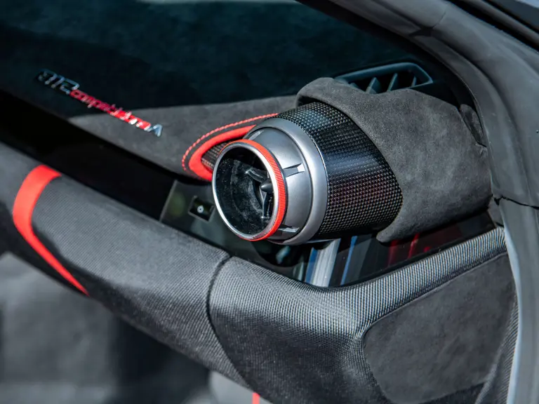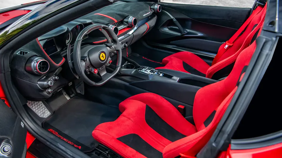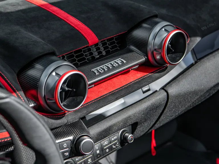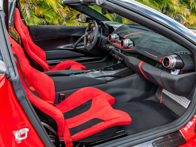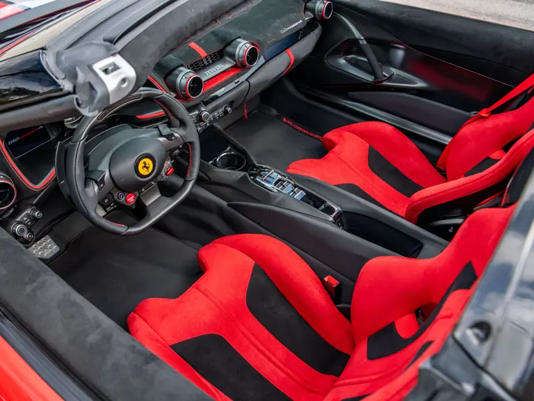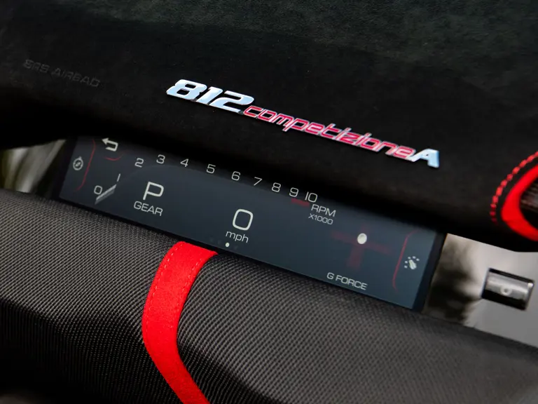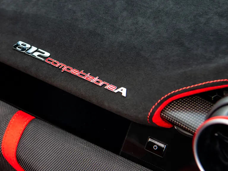 Developed as the open-top counterpart to the 812 Competizione, the Competizione A offered, upon its debut, the most powerful naturally aspirated V-12 engine Ferrari had ever produced in a road car. Displacing 6.5 liters and revving to an electrifying 9,500 rpm, the engine delivers 819 horsepower with breathtaking immediacy, propelling the car from 0 to 62 mph in 2.85 seconds on its way to a top speed of 211 mph.