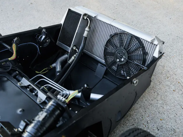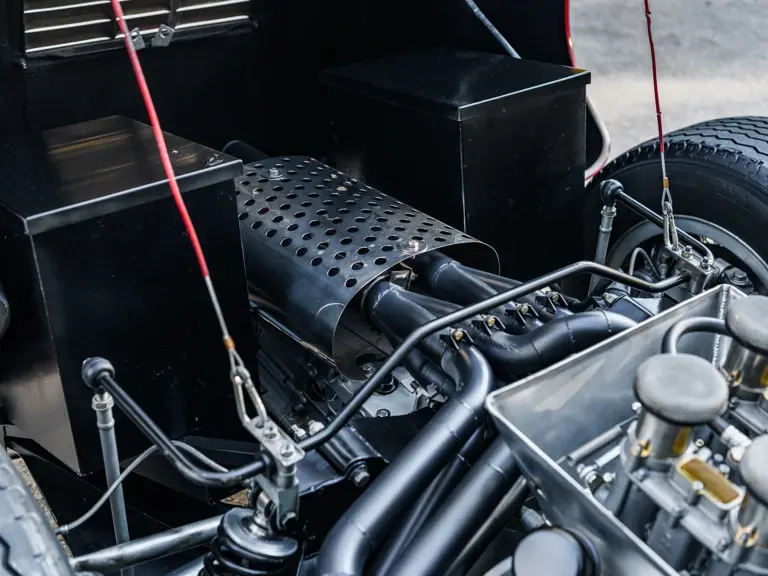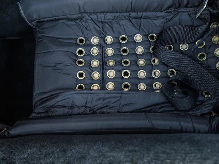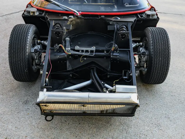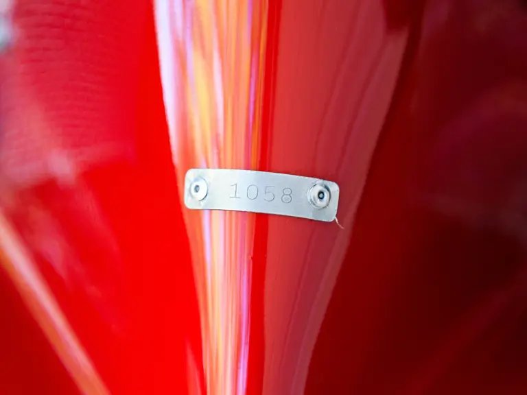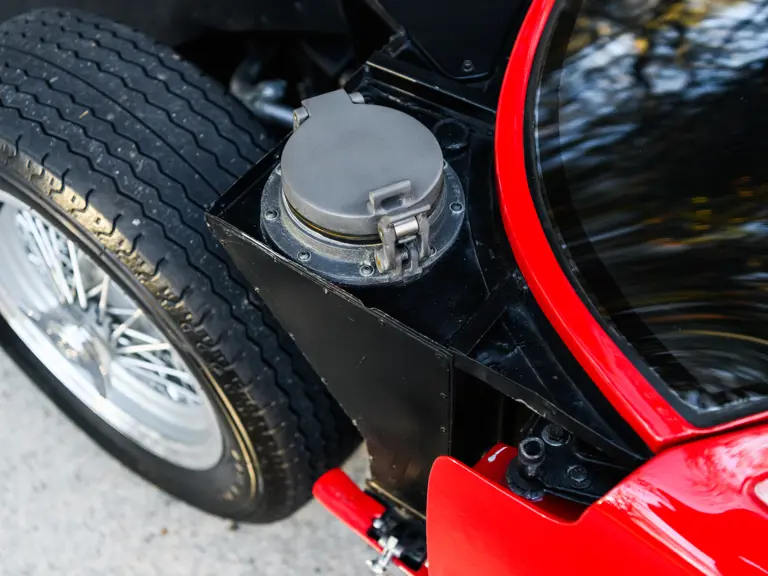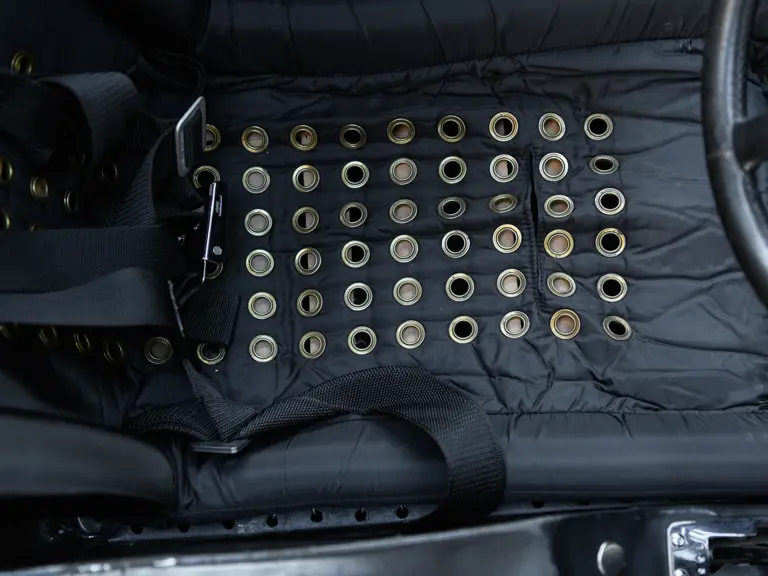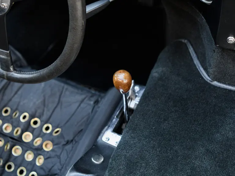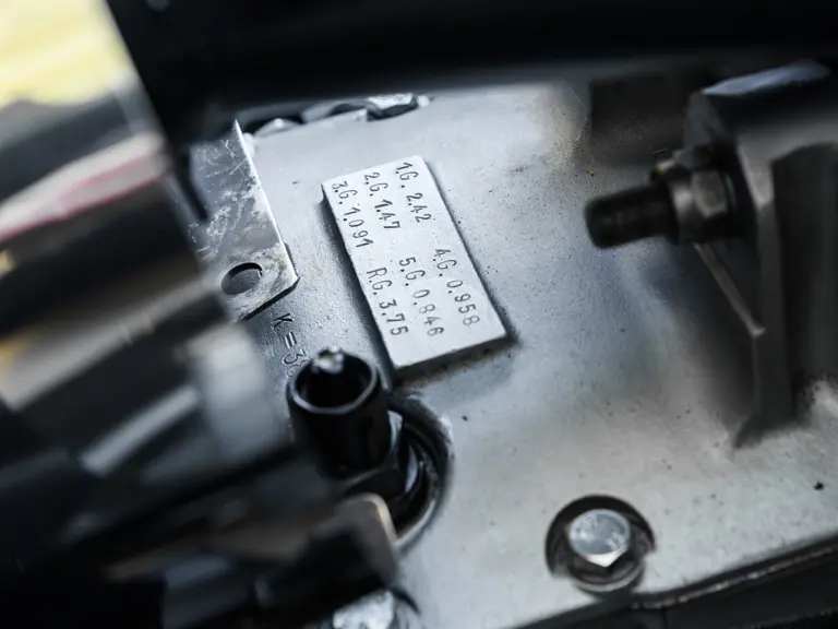 In a testament to the relatively gentle use P/1058 has experienced throughout its life, compared to those that were used in wheel-to-wheel racing, riveted 1058 tags can be found throughout the car on various body panels, and it even retains the small “luggage boxes” beneath the rear clamshell that, if only technically, allowed the GT40 to meet storage requirements necessary for racing qualification. Under current ownership the seats have been changed in favor of the lightweight racing style design trimmed in lightweight black fabric with brass eyelets; original seat coverings and components accompany the sale.
