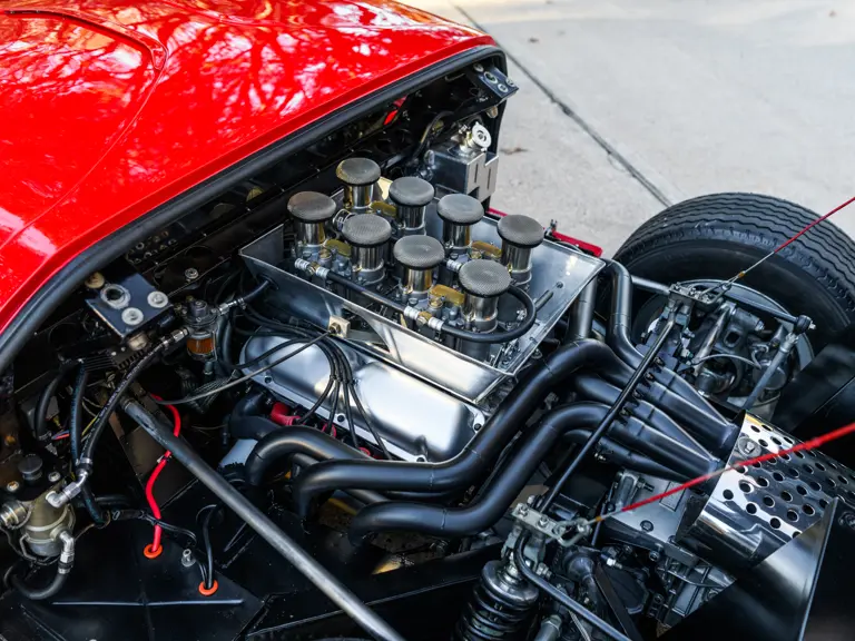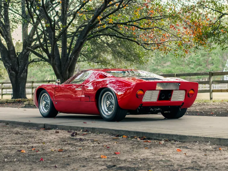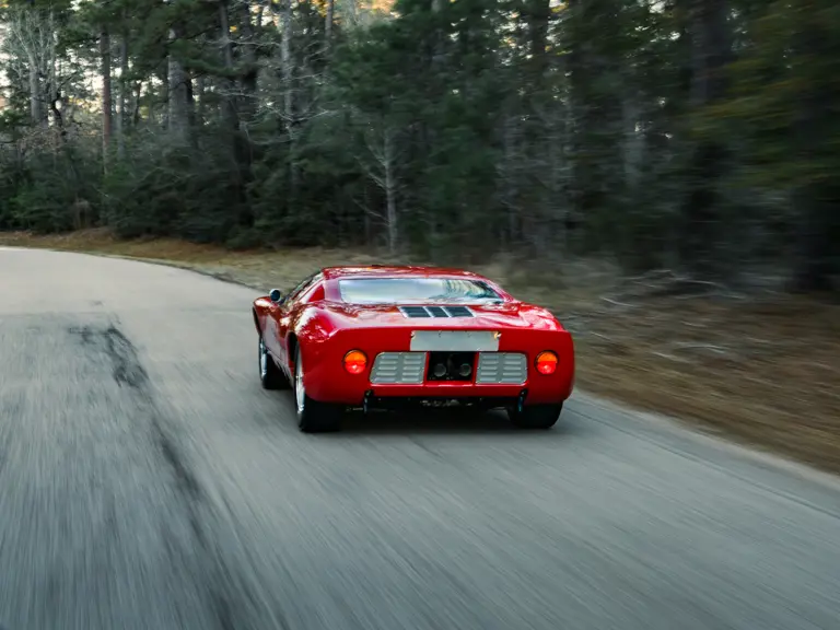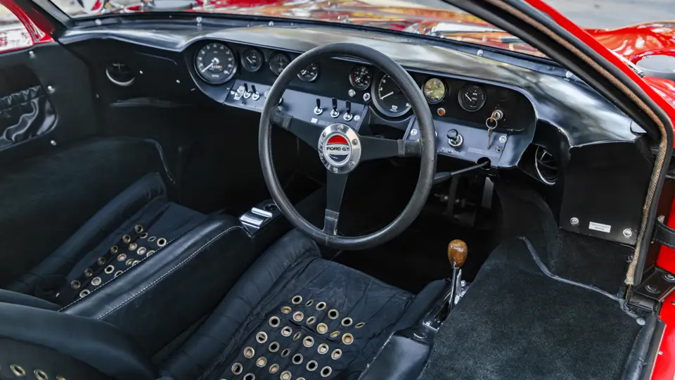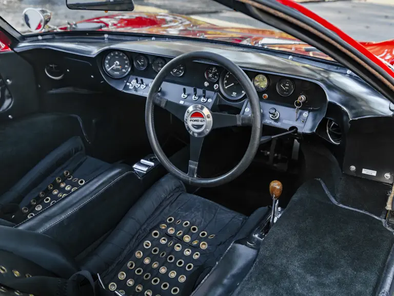 This GT40 is one of 20 such Mk I examples that were assigned to this program, and in December 1966 the car was part of a group of seven GT40s that were shipped together from FAV’s Slough factory en route to Ford’s Dearborn facility. Finished in Carmen Red paint over a black interior, chassis P/1058 was officially assigned to the Promotion and Disposal Program in February 1967, and it subsequently joined six sister cars as a consignment to the Ford Division’s Car Merchandising Department.