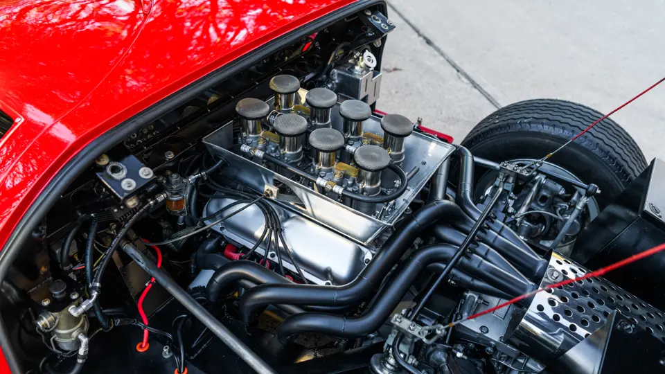 - Powered by Ford’s legendary 289 High Performance V-8 featuring original sand-cast Weber carburetors; backed by a five-speed ZF transaxle