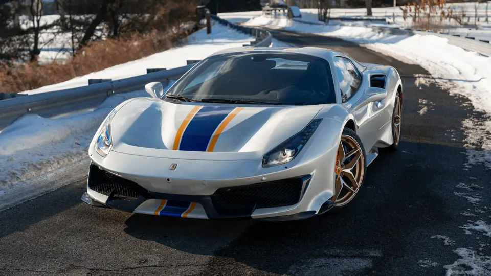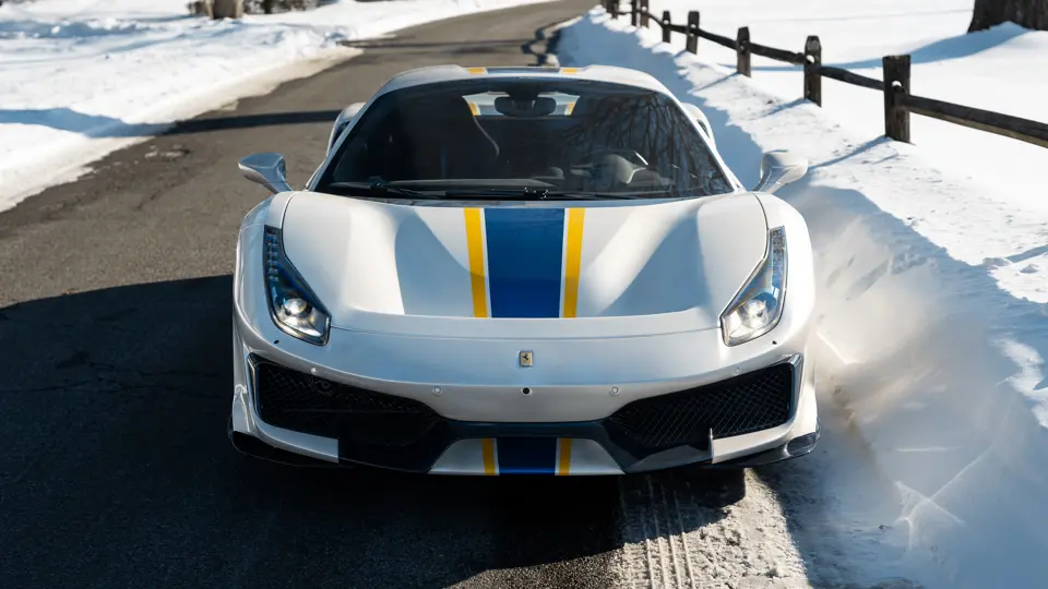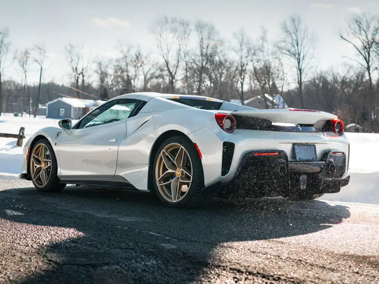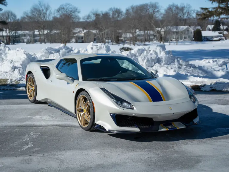 Performance is jaw-dropping, with a 0-62 mph sprint of just 2.85 seconds and a 211-mph stated top speed, but Ferrari’s engineers also prioritized balance and handling; Pista, after all, is Italian for “track,” which signifies the car’s motorsport-derived purity of purpose. Formula 1-inspired aerodynamic enhancements and carbon fiber composite construction are found across the car, and the 488 Pista models were the first to receive the Ferrari Dynamic Enhancer—a tech suite that improves handling on the limit by automatically modulating the car’s carbon ceramic brakes for greater control and predictability. It is also worth noting that, with a manufacturer-stated curb weight of 3,054 pounds, this hardtop convertible is over 200 pounds lighter than the 488 GTB coupe.