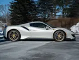 Delivered via Ferrari of Vancouver, British Columbia, this 488 Pista Spider was ordered with an enviable and extravagant slate of distinctive options totaling $198,153. Its attractive livery of Bianco Italia, a three-layer pearlescent finish special-order paint, is contrasted with Blue Elettrico and Giallo extended racing stripes, while gold-colored forged diamond-cut wheels are mounted on each corner.