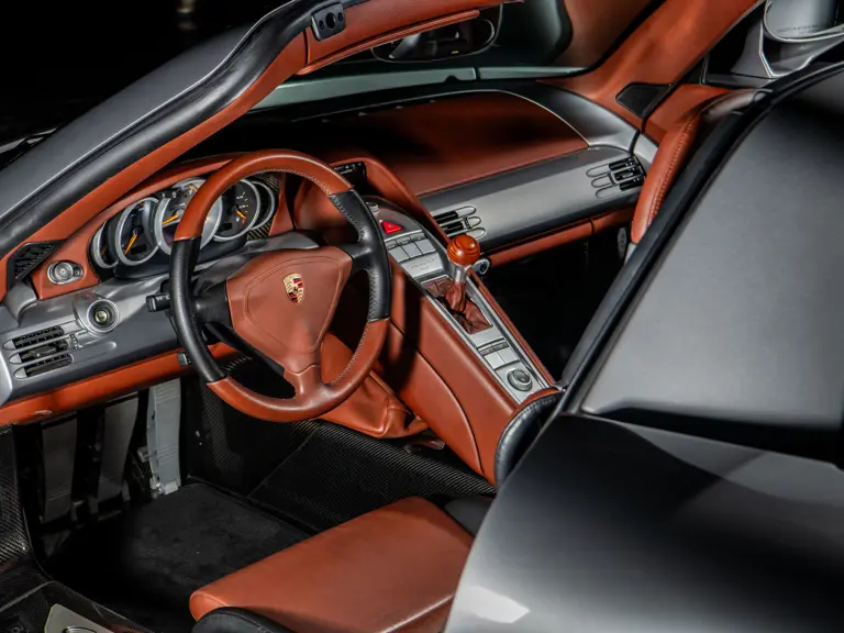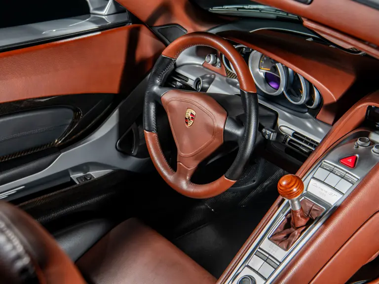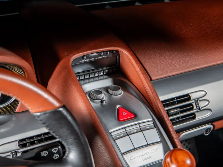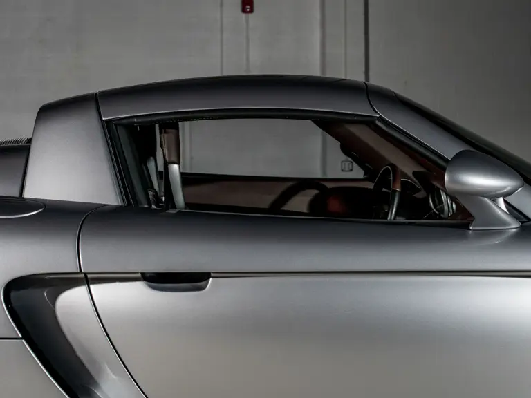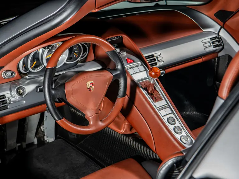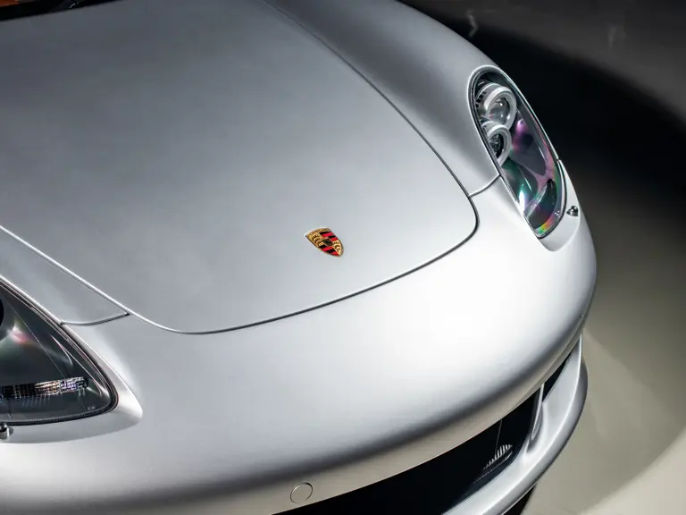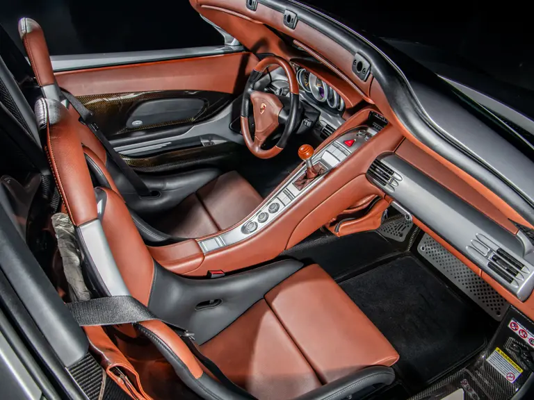 Displaying an astonishingly low 602 miles at cataloguing, this remarkable Carrera GT is finished in the model’s signature GT Silver Metallic, complemented by a beautifully appointed cabin of Ascot Brown and Natural Black leather. Completed in June 2005, it is one of only 644 examples originally sold in the United States and came factory-equipped with XT bucket seats, manual air conditioning, a Bose sound system, car cover, Porsche Online Pro CD radio, and a set of factory luggage trimmed to match in Ascot Brown and Natural Black leather.