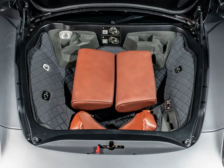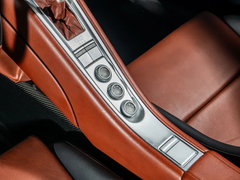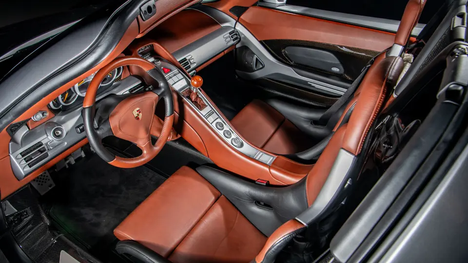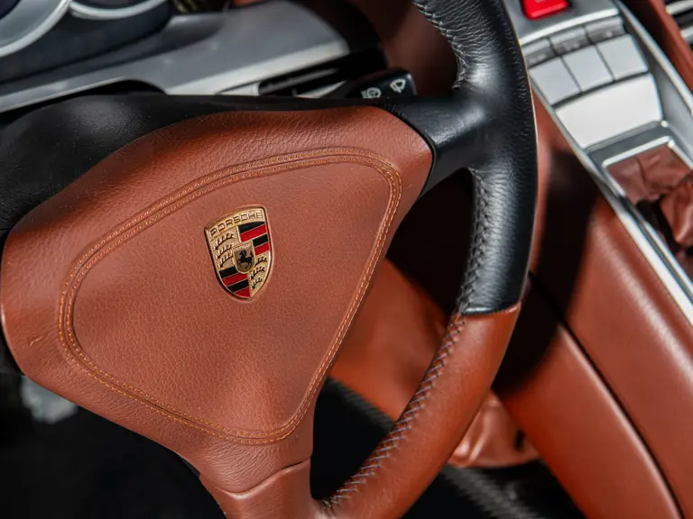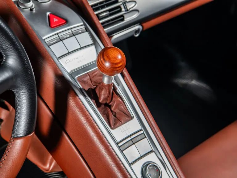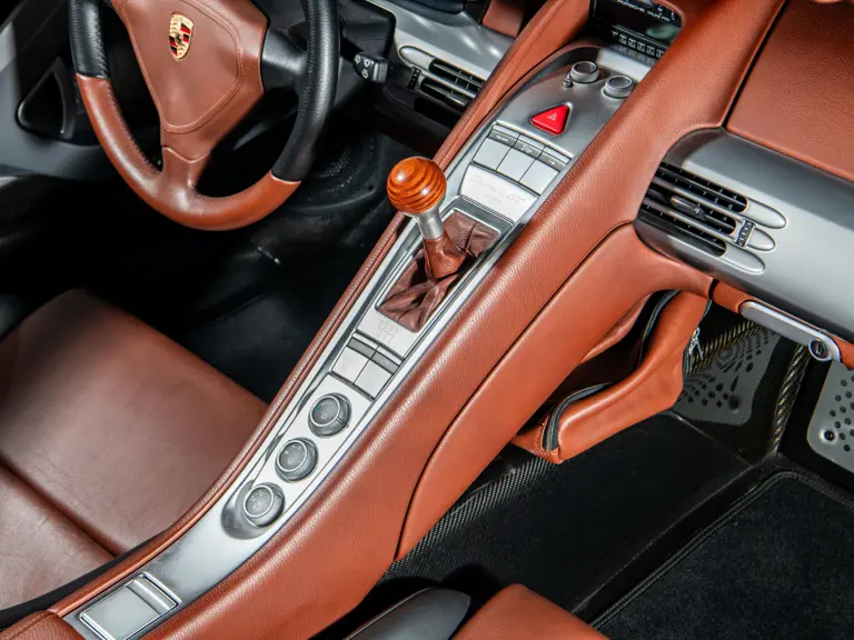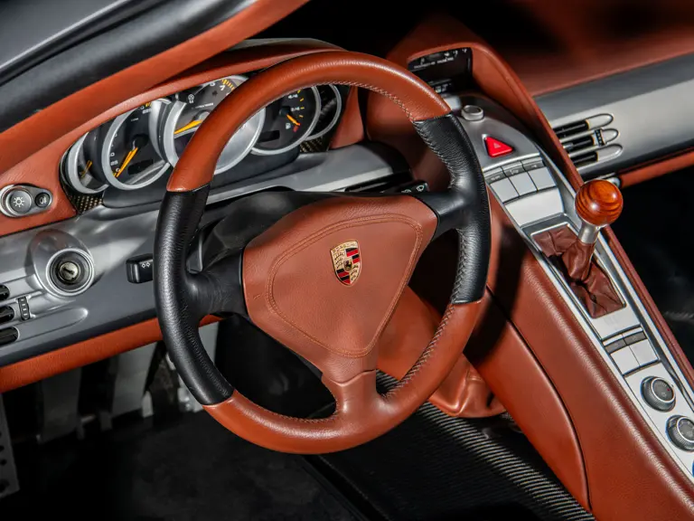 Displaying an astonishingly low 602 miles at cataloguing, this remarkable Carrera GT is finished in the model’s signature GT Silver Metallic, complemented by a beautifully appointed cabin of Ascot Brown and Natural Black leather. Completed in June 2005, it is one of only 644 examples originally sold in the United States and came factory-equipped with XT bucket seats, manual air conditioning, a Bose sound system, car cover, Porsche Online Pro CD radio, and a set of factory luggage trimmed to match in Ascot Brown and Natural Black leather.