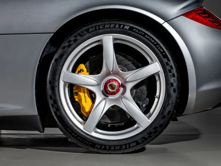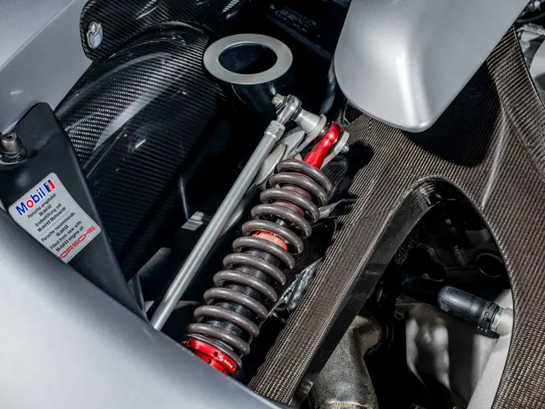 Following its return to the United States, the car has continued to be meticulously maintained, highlighted by a March 2025 service at Porsche Nashua in New Hampshire totaling $89,395. Invoices on file show the replacement of fluids, filters, seals, spark plugs, and additional components, along with the installation of four new Michelin Pilot Sport Cup 2 tires and completion of the critical APA3 recall, which involved replacement of the trailing arms on both axles. In February 2026, the car returned to Porsche Nashua for a comprehensive multi-point inspection in preparation for the sale. It is accompanied by factory books, a window sticker copy, service records, battery tender, car cover, wooden service ramps, Carrera GT memorabilia, and select pieces of its factory luggage.