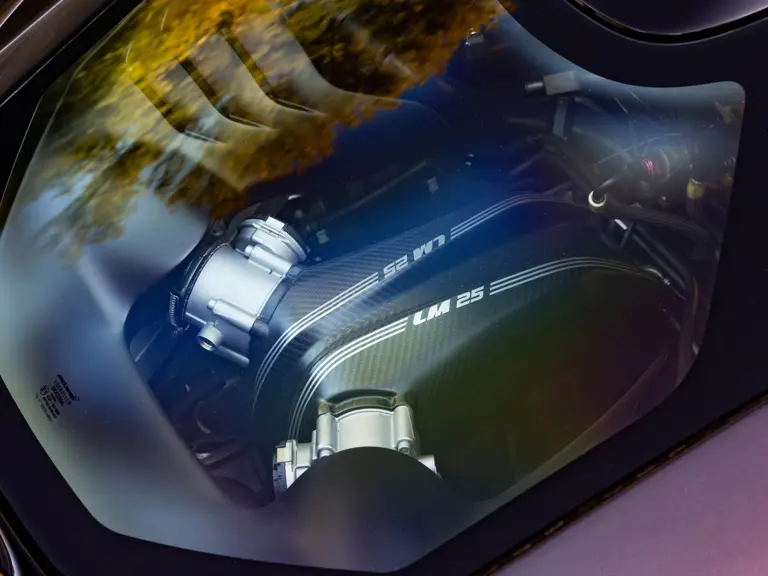 Lanzante converted only seven models to LM 25 specification, one for each of the F1 GTRs entered in the 1995 endurance race. Each LM 25 is a one-off, built on a different McLaren supercar—the 600LT Spider, 620R, 765LT Spider, P1 GTR, P1 HDK, Senna, and Senna GTR. Special features include aerodynamic enhancements to the bodywork, two-tone grey paintwork inspired by the Tokyo Ueno Clinic livery of the Le Mans-winning F1 GTR, grey-tinted exposed carbon fiber elements, five-spoke, center-locking, forged aluminum and carbon fiber wheels, and gold brake calipers with red McLaren lettering.