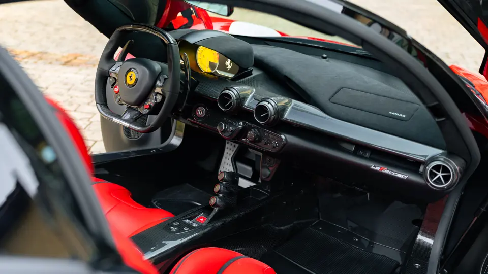 The final phase of LaFerrari development embodied at least one car, the featured chassis number 197860. Coded as the F150 Prototipo Preserie PS1, this LaFerrari prototype is nearly identical to the finished car that debuted at the Geneva Salon in 2013. It is understood to have a pre-production hybrid system, including the HY-KERS-boosted 6.3-liter V-12, with prototype ancillaries and components. Built around a genuine carbon fiber tub, as in the production versions, the PS1 also features active aero systems, unlike some of the earlier prototypes.