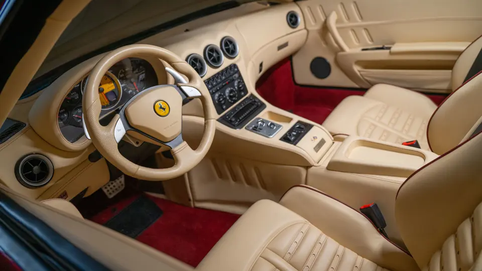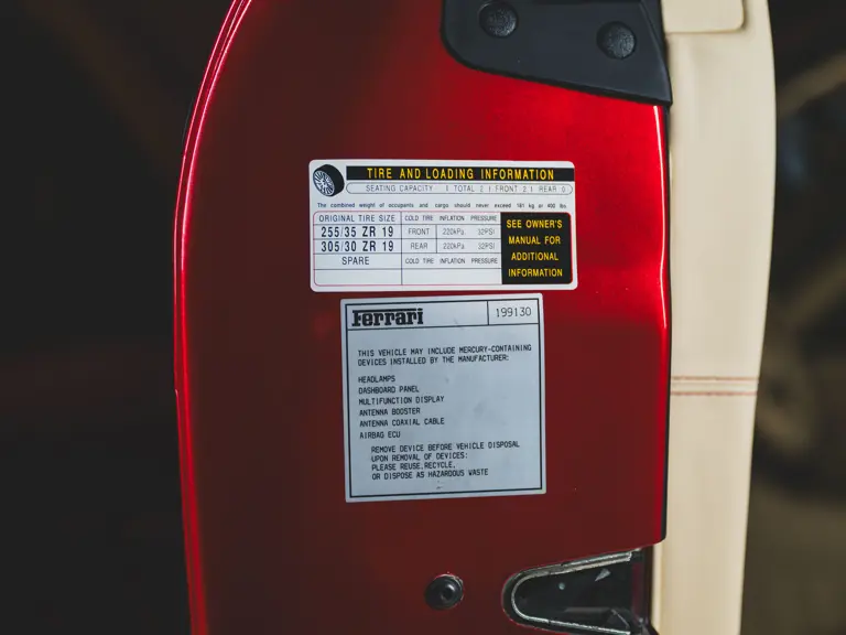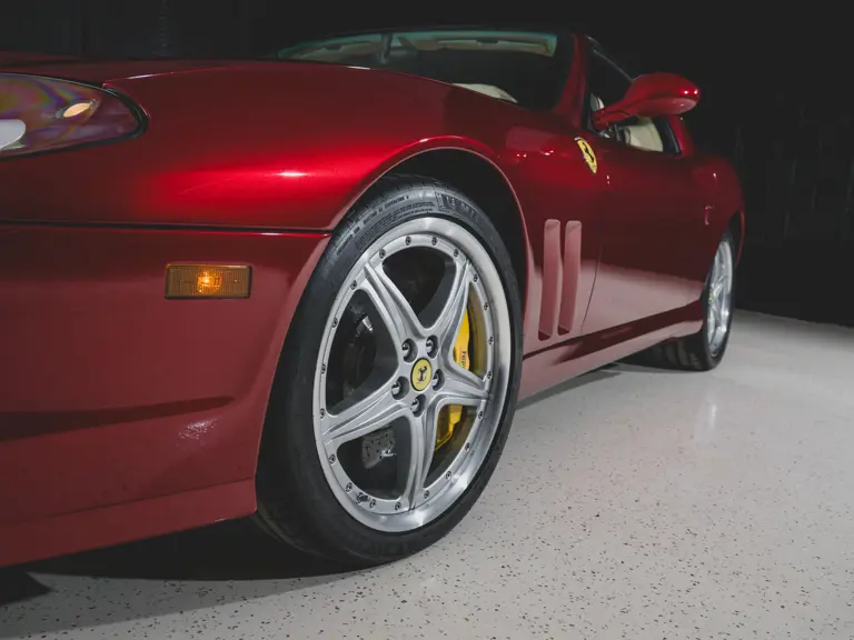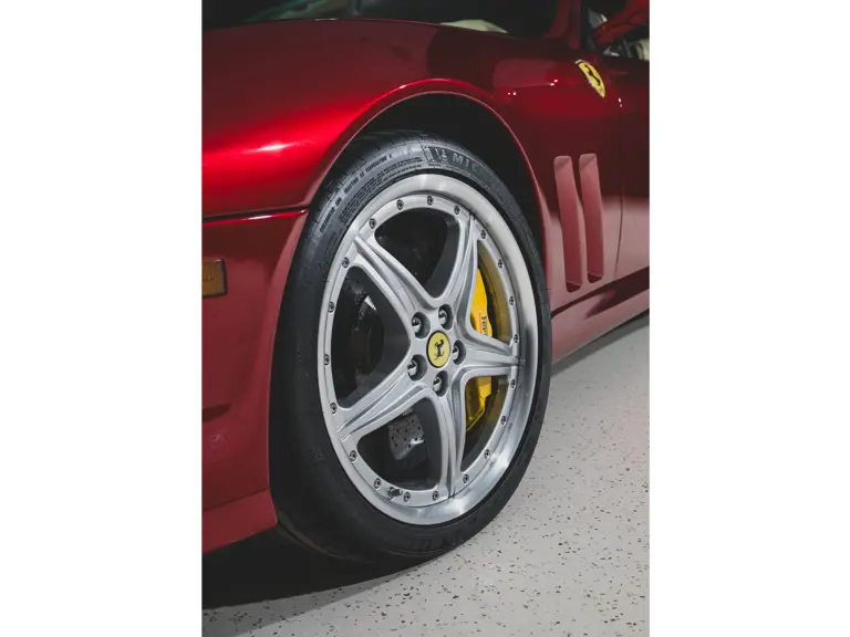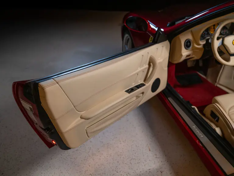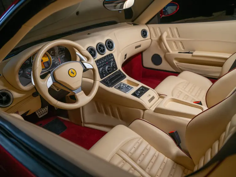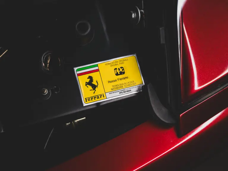 The Superamerica offered here was specified from Miller Motorcars of Greenwich, Connecticut, by the renowned supercar collector Michael Fux. It was desirably finished in the beautiful and striking livery of Rosso Fiorano, a very rare shade, over a Crema leather interior, with Daytona-style seats piped and stitched in Bordeaux, yellow-painted brake calipers, and the HGTC package. Perhaps the single most desirable option for the Superamerica, the HGTC package consists of carbon ceramic brakes with racing-specification pads and calipers, 19-inch rims, a lowered suspension, titanium racing exhausts, and faster calibration for the steering rack, adding more performance to an already capable supercar.