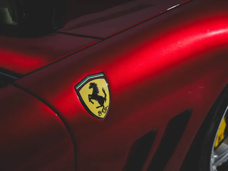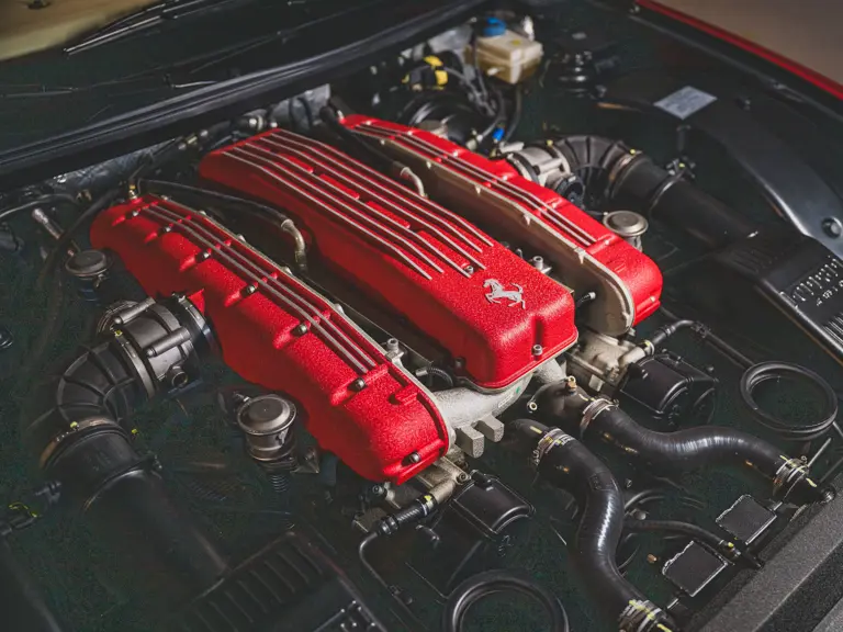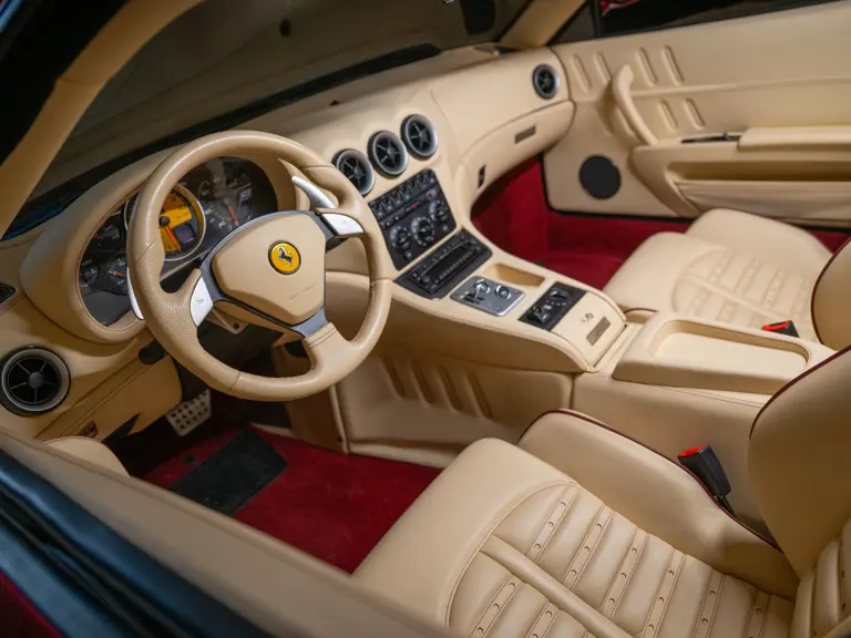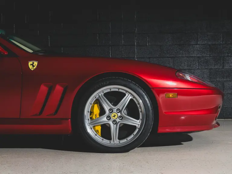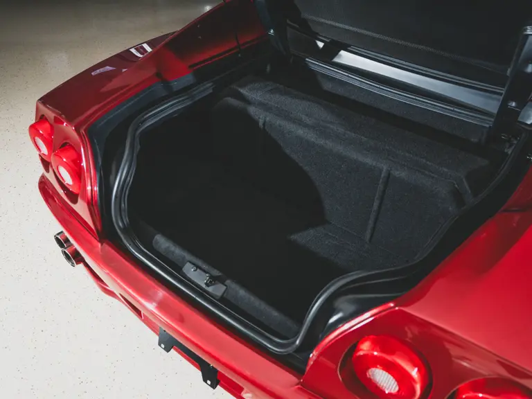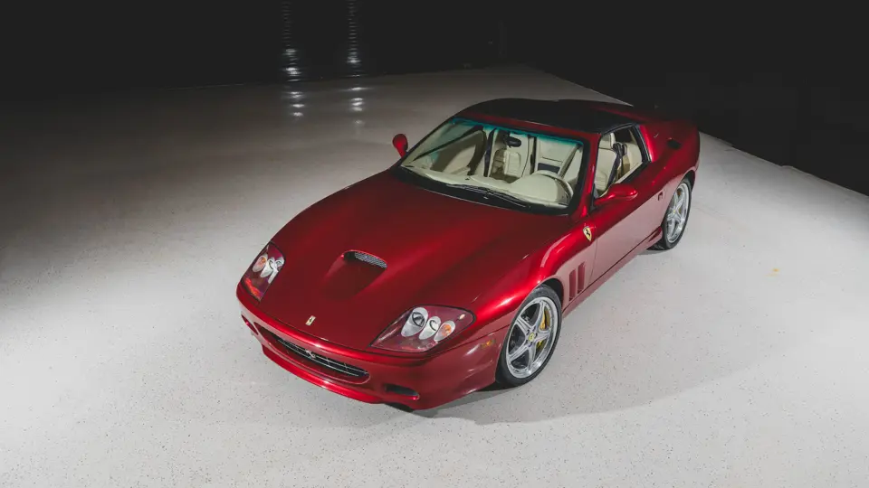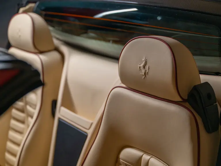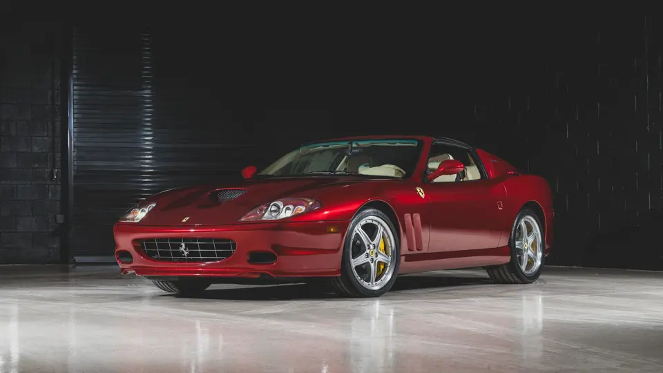 Ferrari’s 575 Superamerica was immediately set apart by its Revocromico rotating hardtop, the first of its kind ever fitted to a production car. It was constructed using a carbon fiber frame integrated with electrochromic glass; when the top was closed, the opacity of the glass could be adjusted via a dial in the cabin, allowing the driver and passenger to experience the full brightness of a conventional sunroof at its lightest setting or just 1% of available light at its darkest. Further, the Superamerica could be transformed into a convertible at the touch of a button, with the roof rotating back to rest flush with the rear deck in just 10 seconds. Combined with the potent drivetrain of the 575M Maranello beneath, it made for a formidable sports car for all occasions and weather, one that was true to the storied spirit of the Superamerica name.