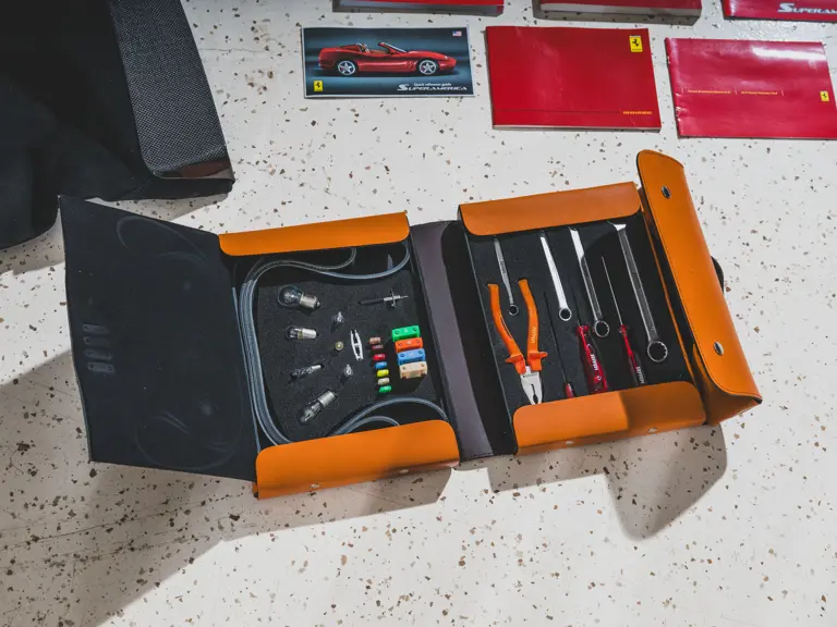 Acquired by a previous owner from Mr. Fux in 2015, the Superamerica gained only its third caretaker from new in 2024. It remains in superb, virtually as-new condition throughout, with only 1,786 actual miles recorded at the time of cataloguing. The Revocromico top shows no delamination, and still retracts and erects as designed. Further, its electrochromic tinting still adjusts properly. It is accompanied by its original books, complete tool set, and keys, as well as service records spanning 2019–2024.