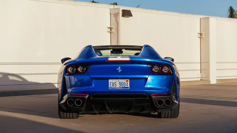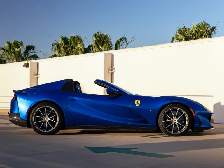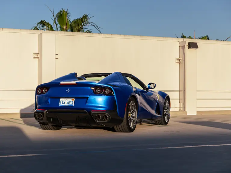 Upon its debut, the 812 GTS was more than just an open-topped variant of the already compelling 812 Superfast: It was also the first front-engined series-production V-12-powered convertible offered by Ferrari since the discontinuation of the 365 GTS/4 Daytona Spider. It borrowed many of the 812 Superfast’s best features, including the potent V-12 with its 789 horsepower and 530 pound-feet of torque, while adopting new touches such as a transmission with shorter gear ratios that ensured acceleration remained equal to the coupe. Styling was massaged throughout to ensure maximum aerodynamic efficiency even without a roof which, when lowered, folds and disappears under a tonneau within the rear deck. Acceleration from zero to 60 mph takes an estimated 2.8 seconds, on the way to a top speed of 211 mph.
