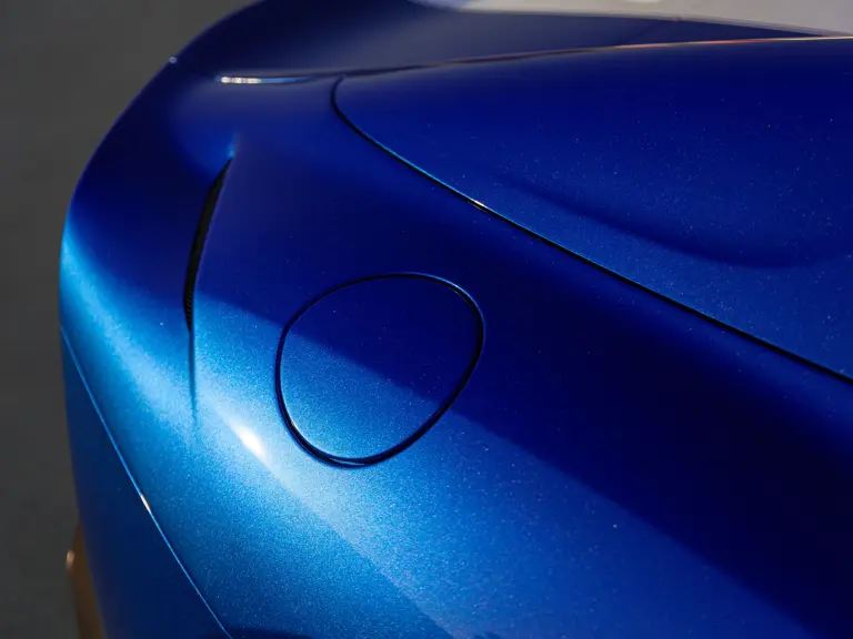 - Blu Stephanie exterior complemented by Blu Superelettrico Alcantara seats; interior leather provided by high-end Italian furniture manufacturer Poltrona Frau
