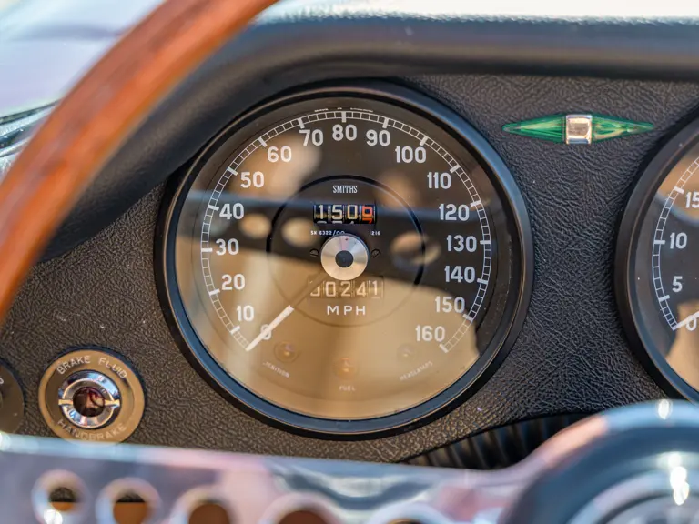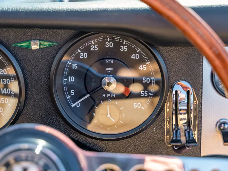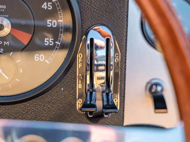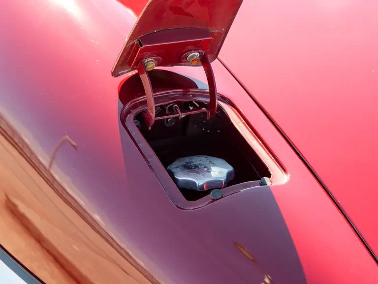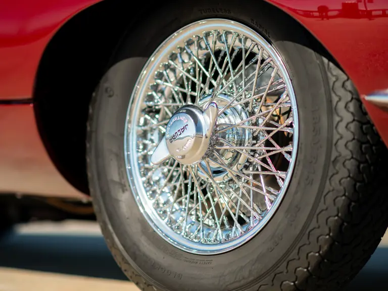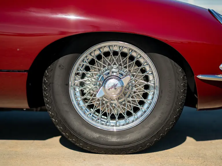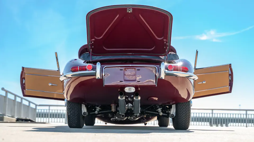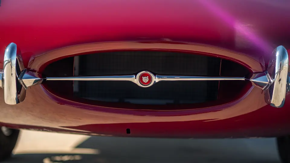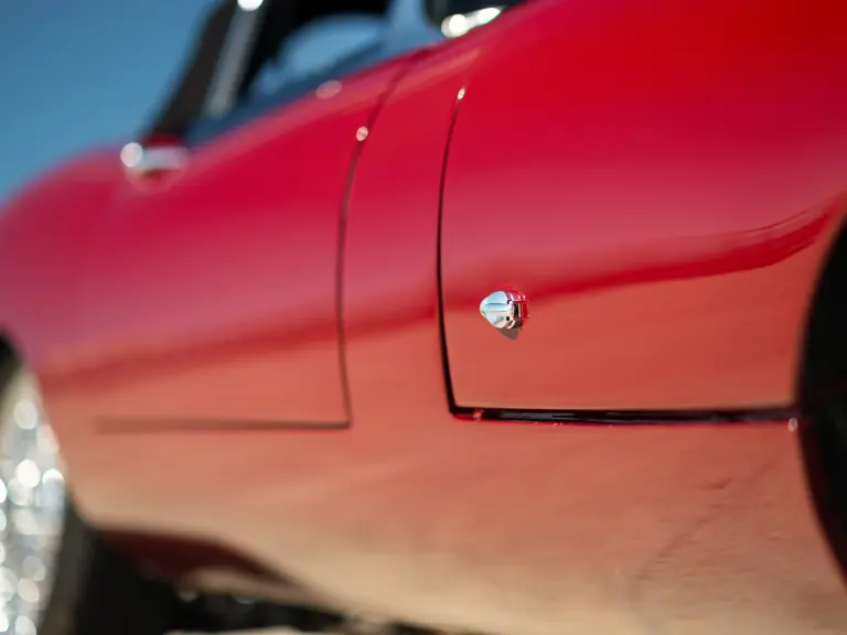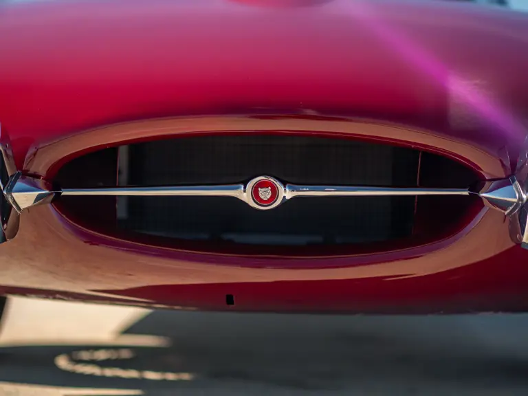 This example, chassis number 875140, is one such car. With a build completion date of 23 June 1961, this E-Type has all the commensurate early Series 1 features. Some, like covered headlights, are readily apparent; others, including the exterior bonnet locks (which require a special, factory-supplied “T” key to open), flat cockpit floors, and ventilation louvers welded, rather than stamped, into the bonnet, may require a trained eye to spot. Of the 1,729 open-air E-types built for the 1961 model year, only a fraction were left-hand-drive examples exhibiting these attributes.